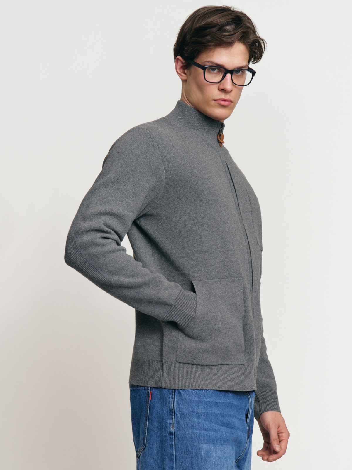 Вязаная толстовка на молнии с воротником