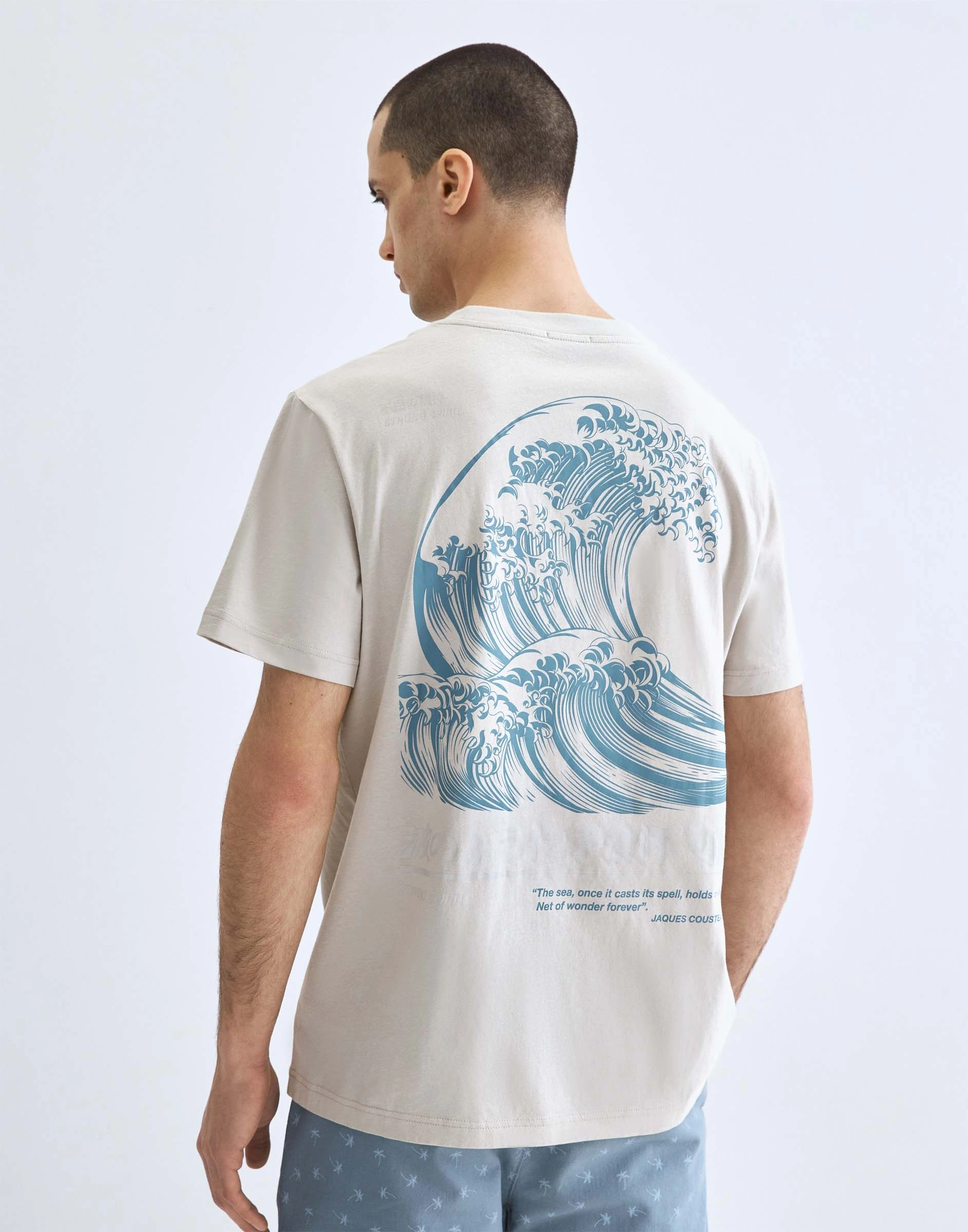 Светло-серая футболка с принтом и надписью Bkt016935-1