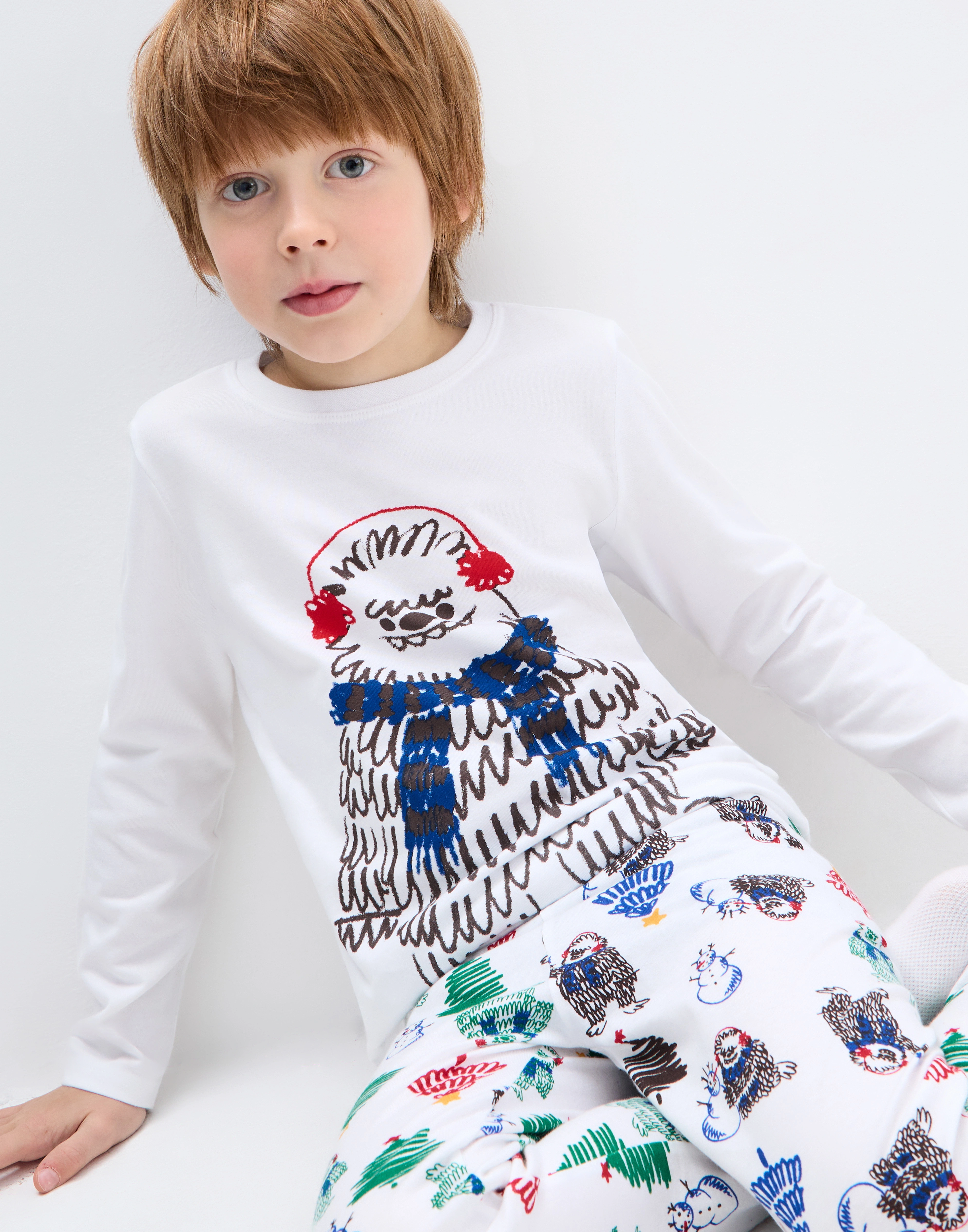 Молочная пижама с новогодним принтом для мальчика Bsl000834-1