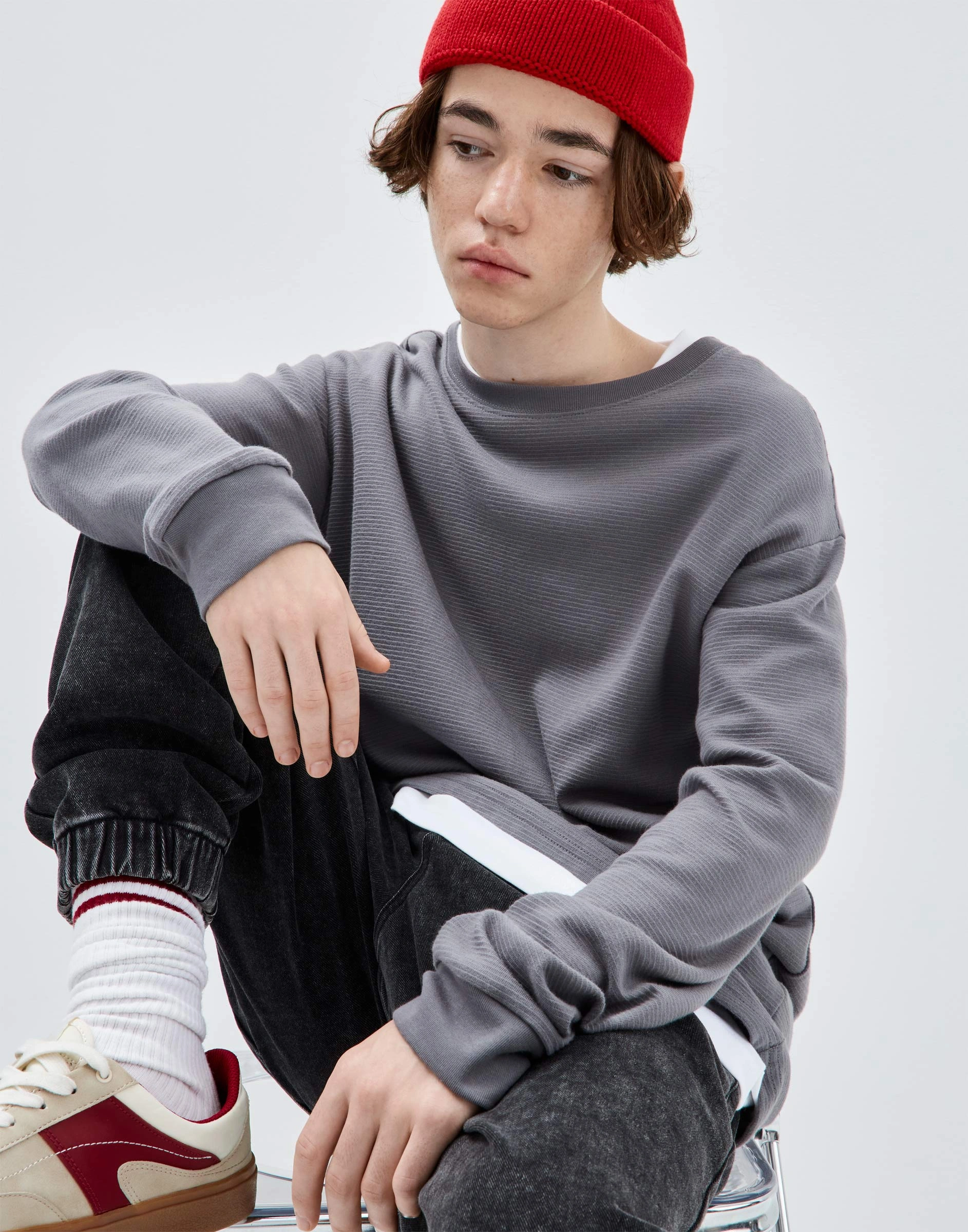 Серый свитшот с лейблом Bkt017278-2