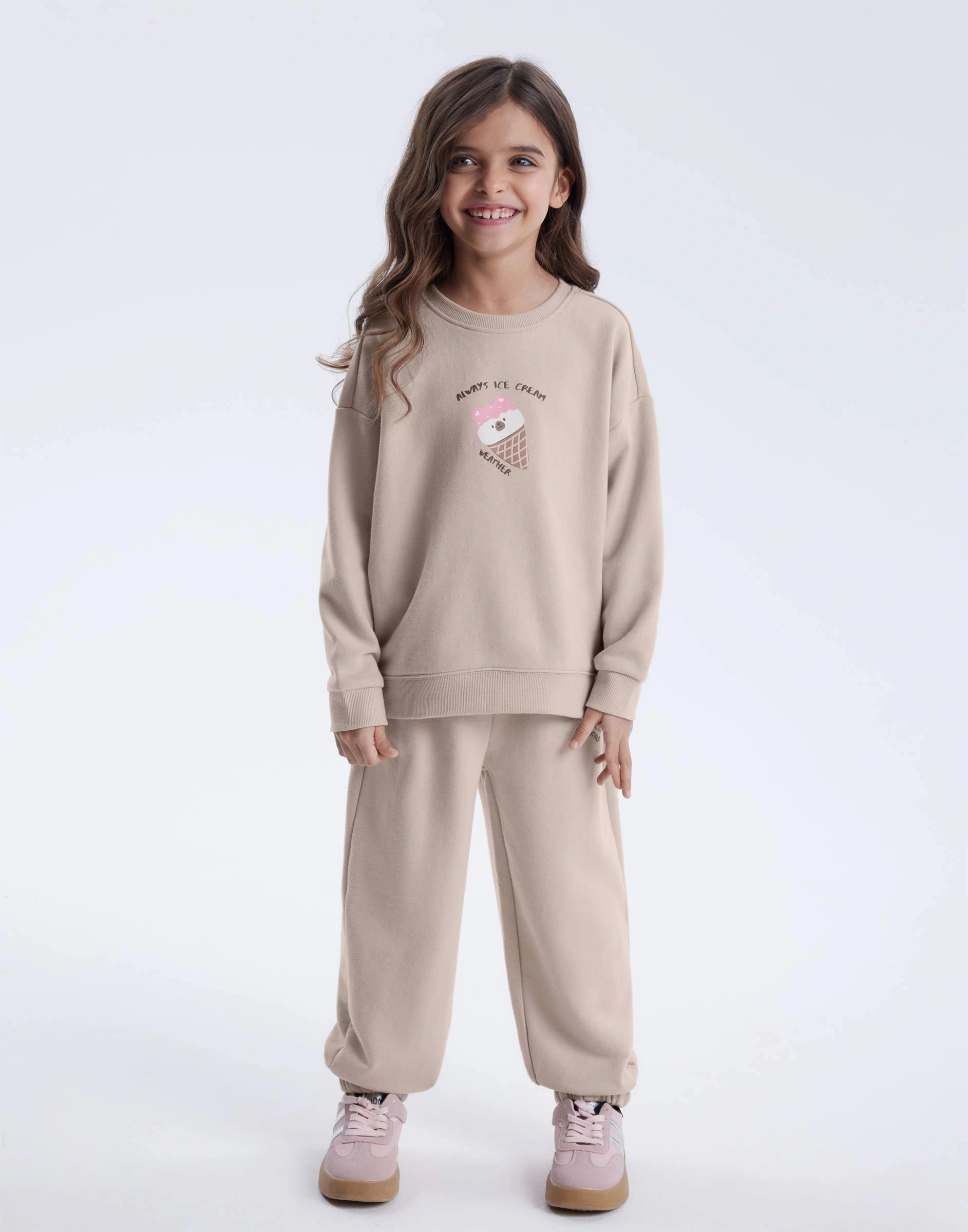 Бежевые спортивные брюки Baggy с принтом для девочки Gac024500-2