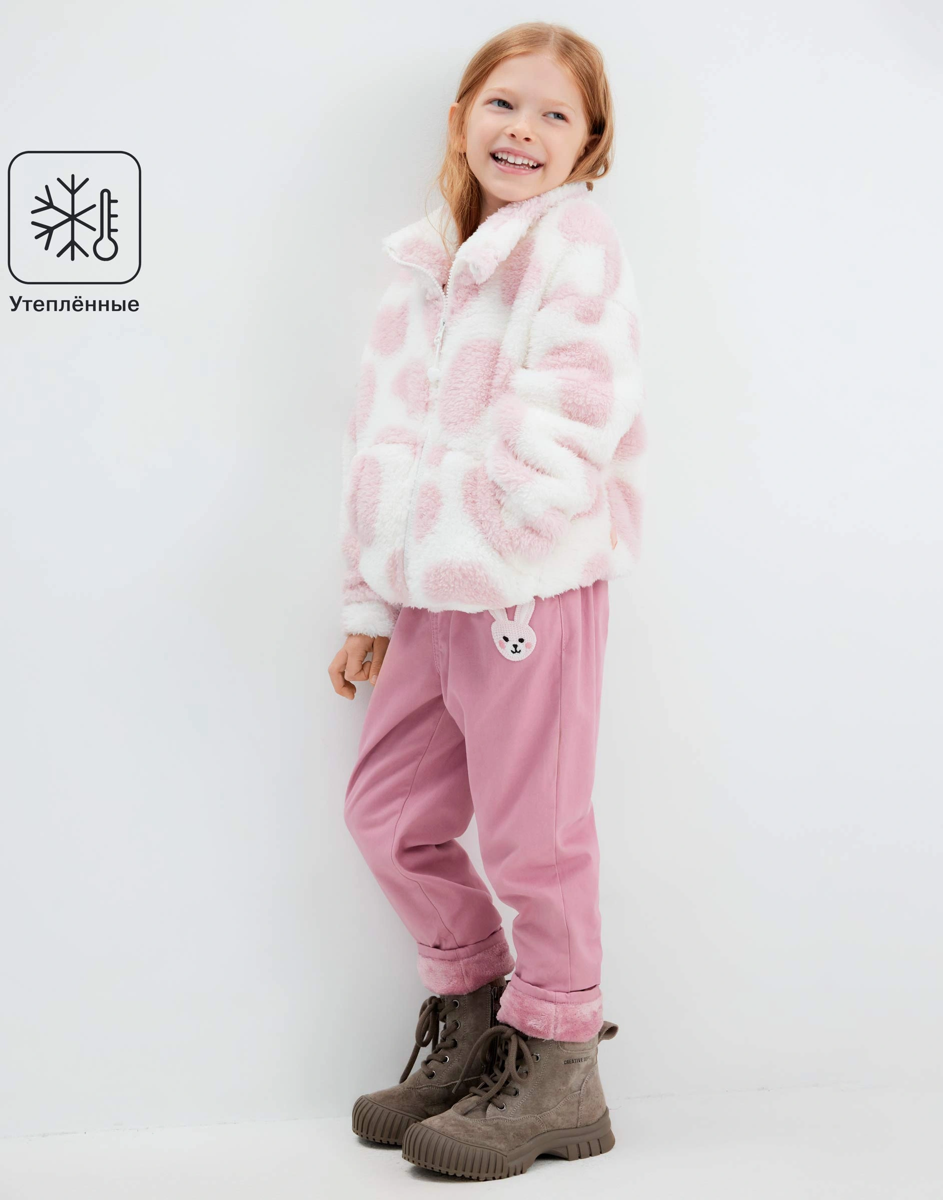 Пыльно-розовые утеплённые брюки Paperbag с патчем для девочки Gwb001504-1