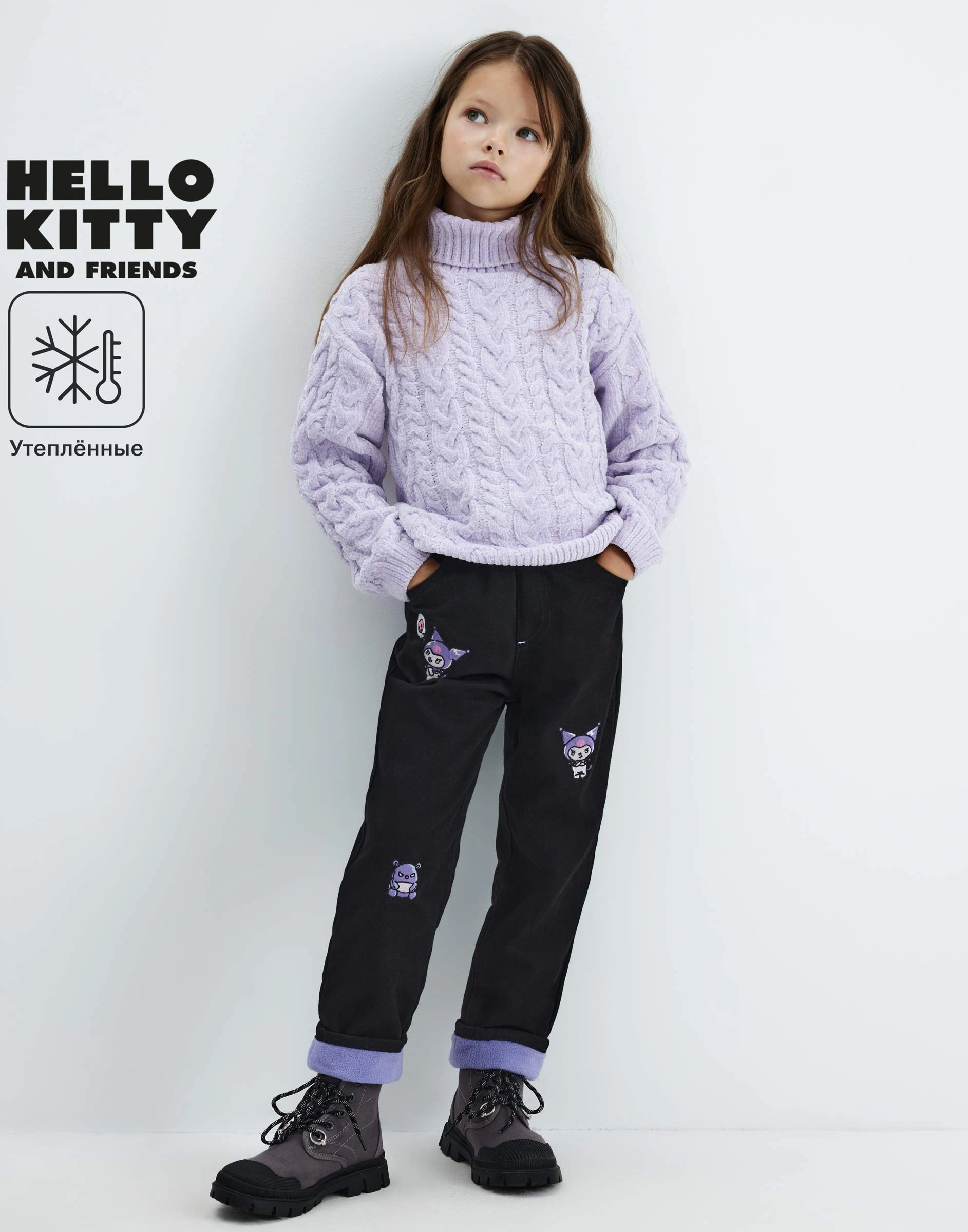 Чёрные утеплённые джинсы Straight Paperbag с вышивкой Kuromi для девочки Gwb001518-1