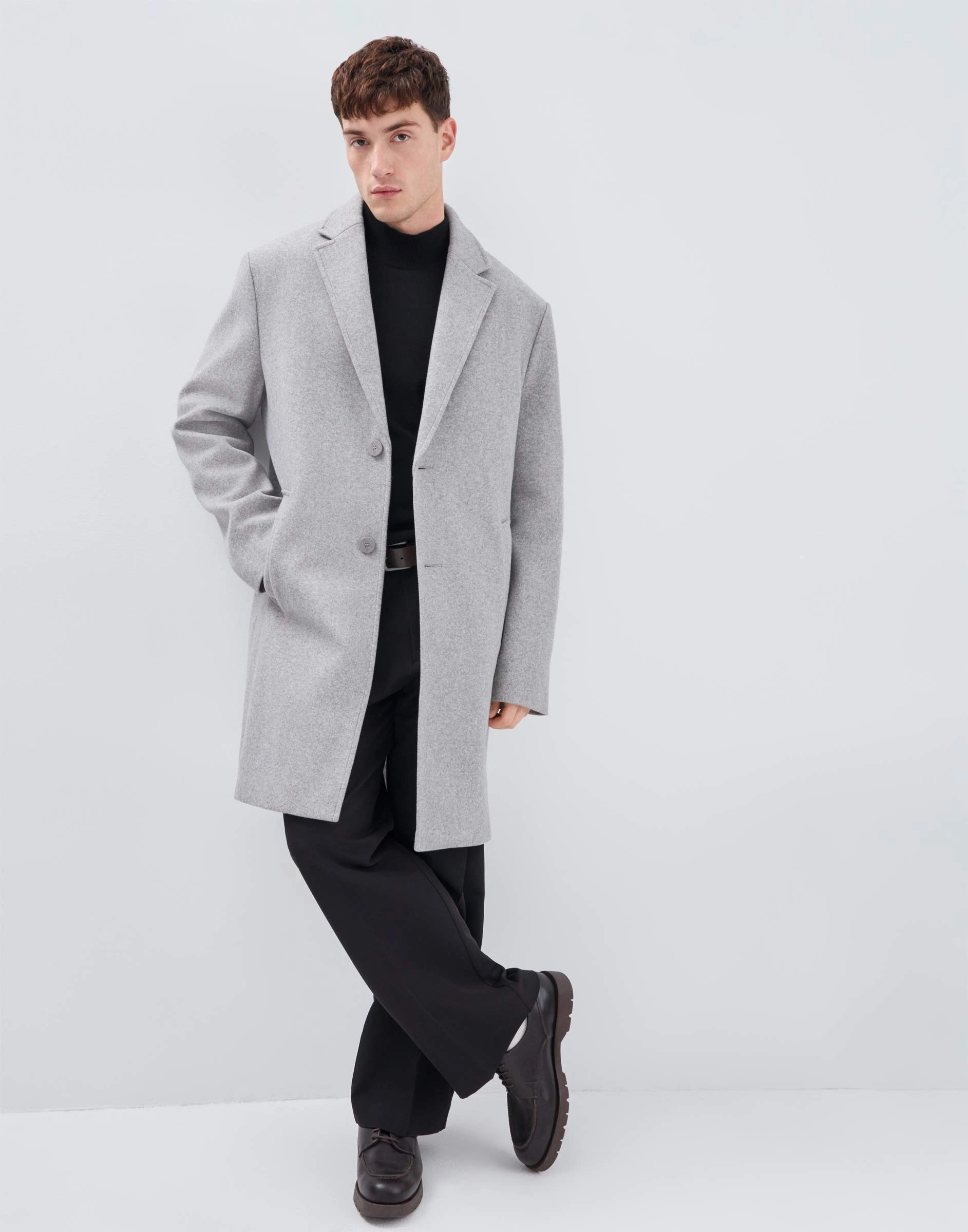 Светло-бежевое однобортное пальто из драпа Bow002295-2