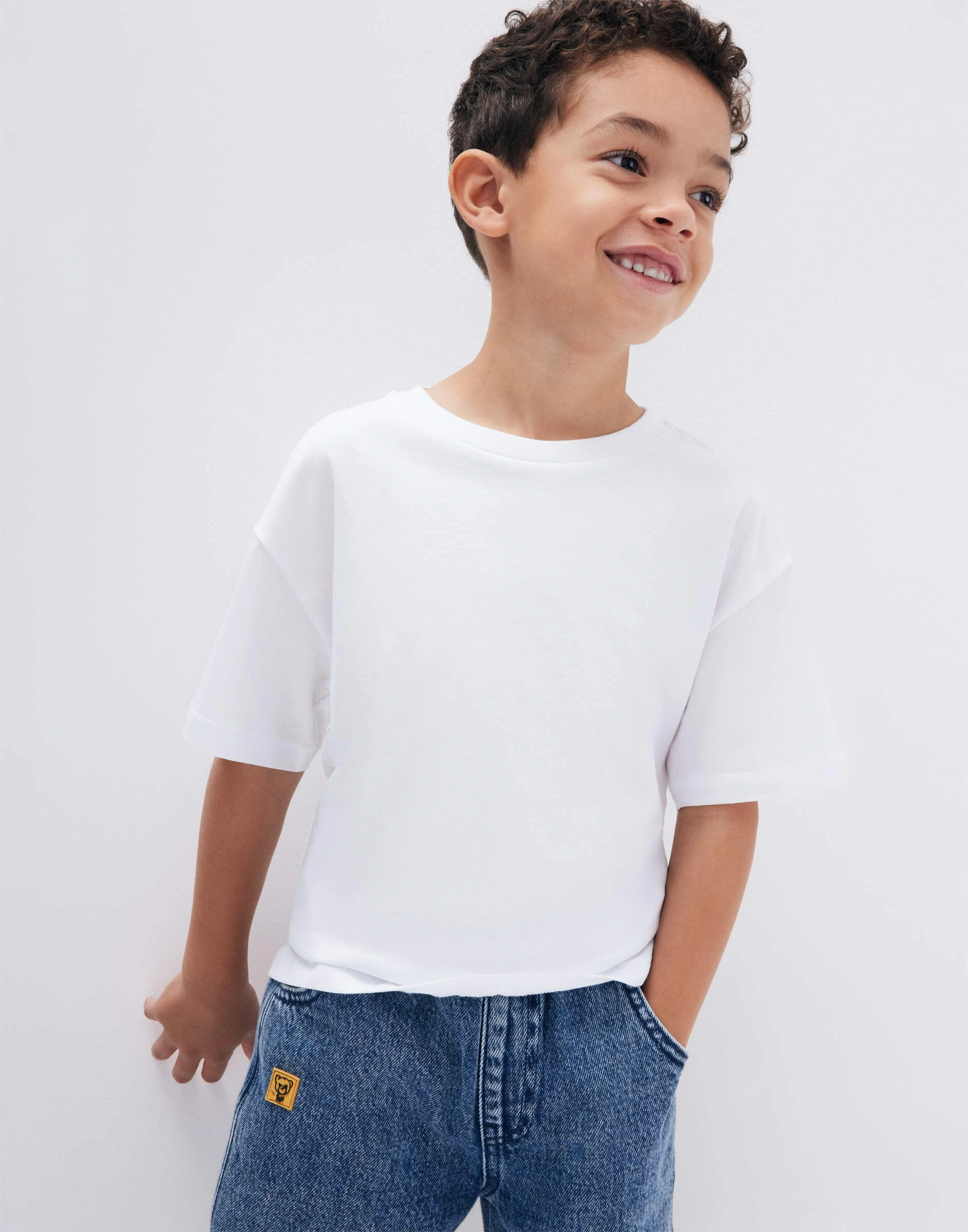 Белая базовая футболка oversize из тонкого джерси для мальчика Bkt017660-1