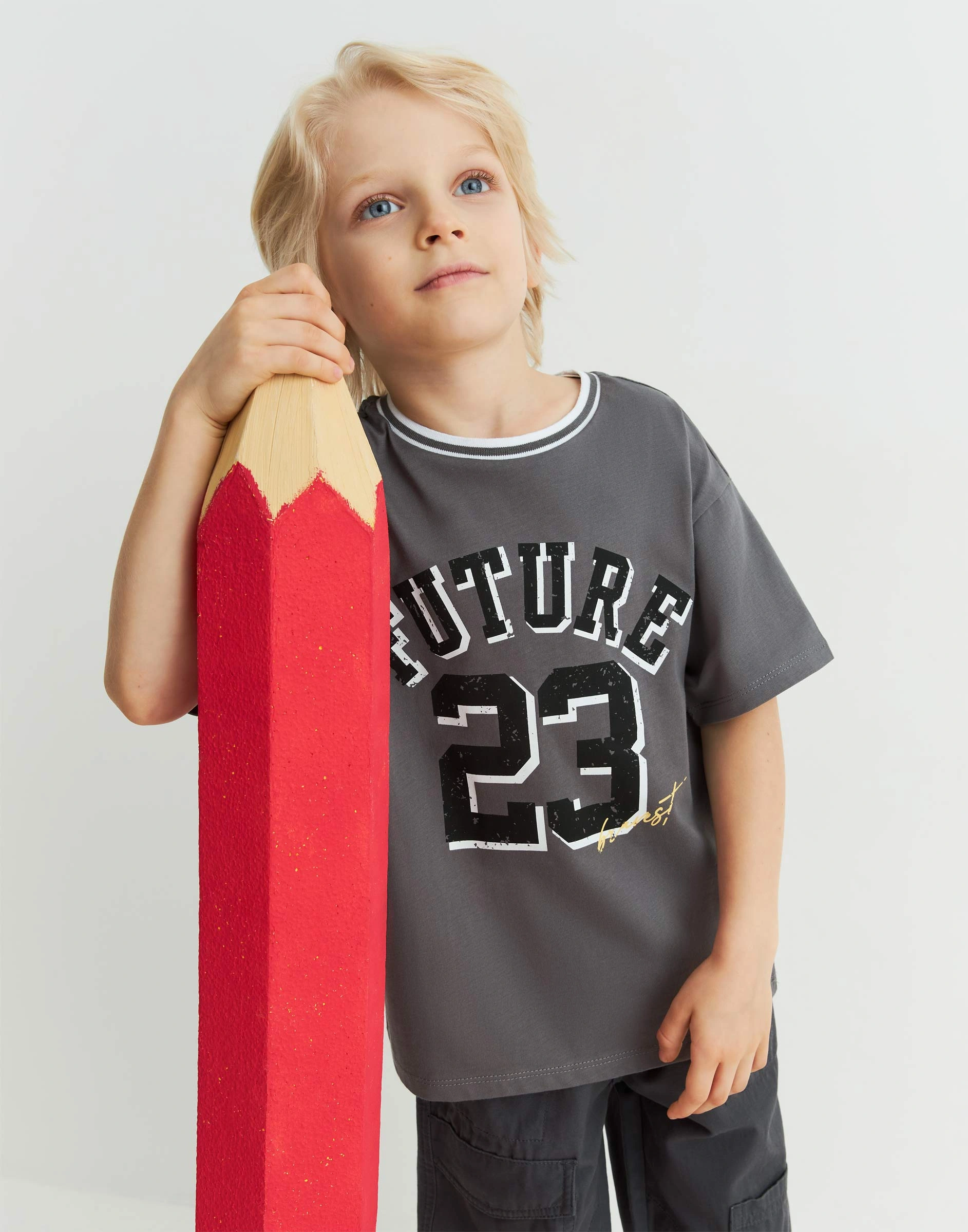 Серая футболка oversize с колледж-принтом для мальчика Bkt016275-2