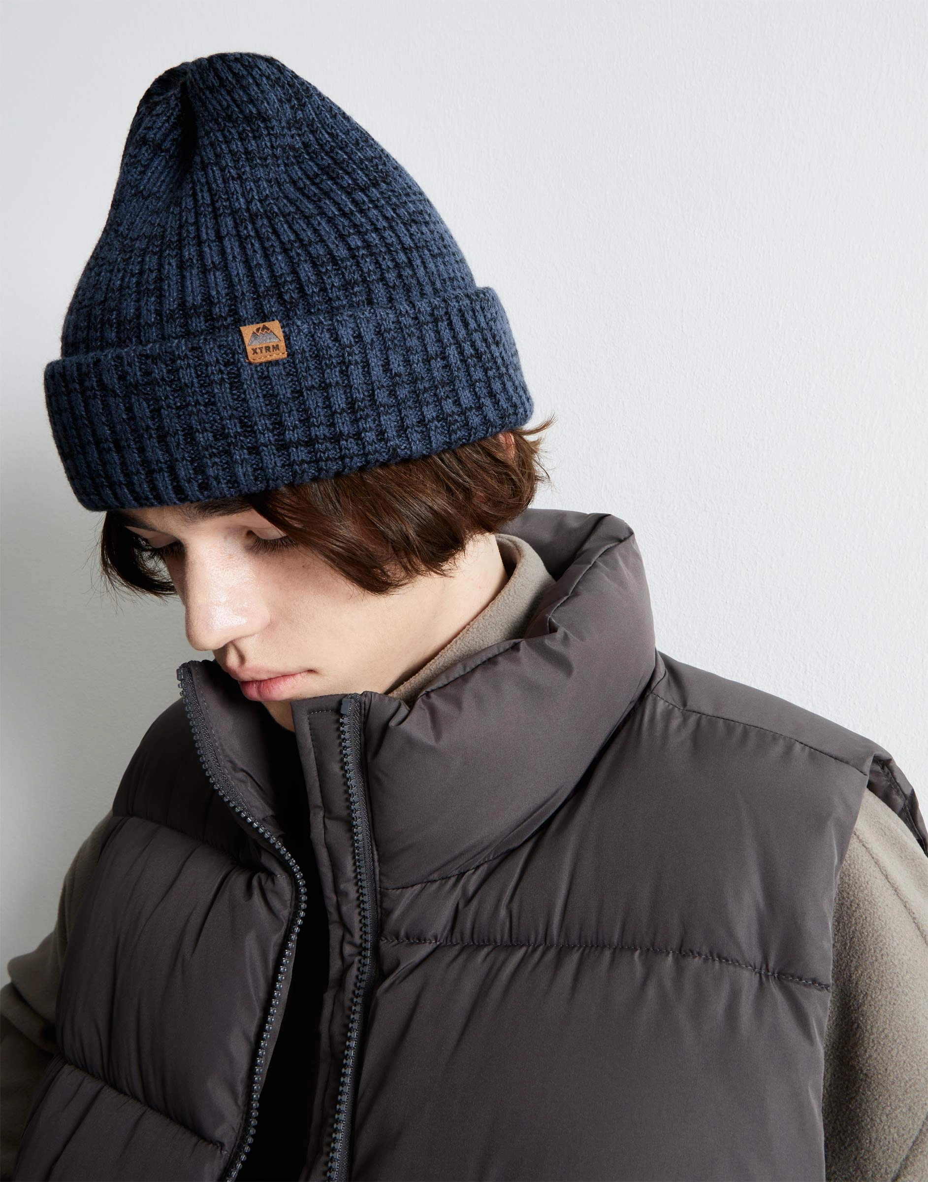 Тёмно-синяя шапка-бини с жаккардовым патчем Bas006286-2