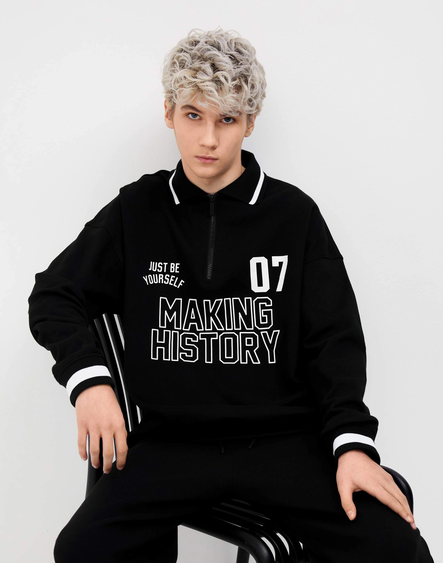 Чёрный свободный свитшот с воротником и принтом Bac013846-2