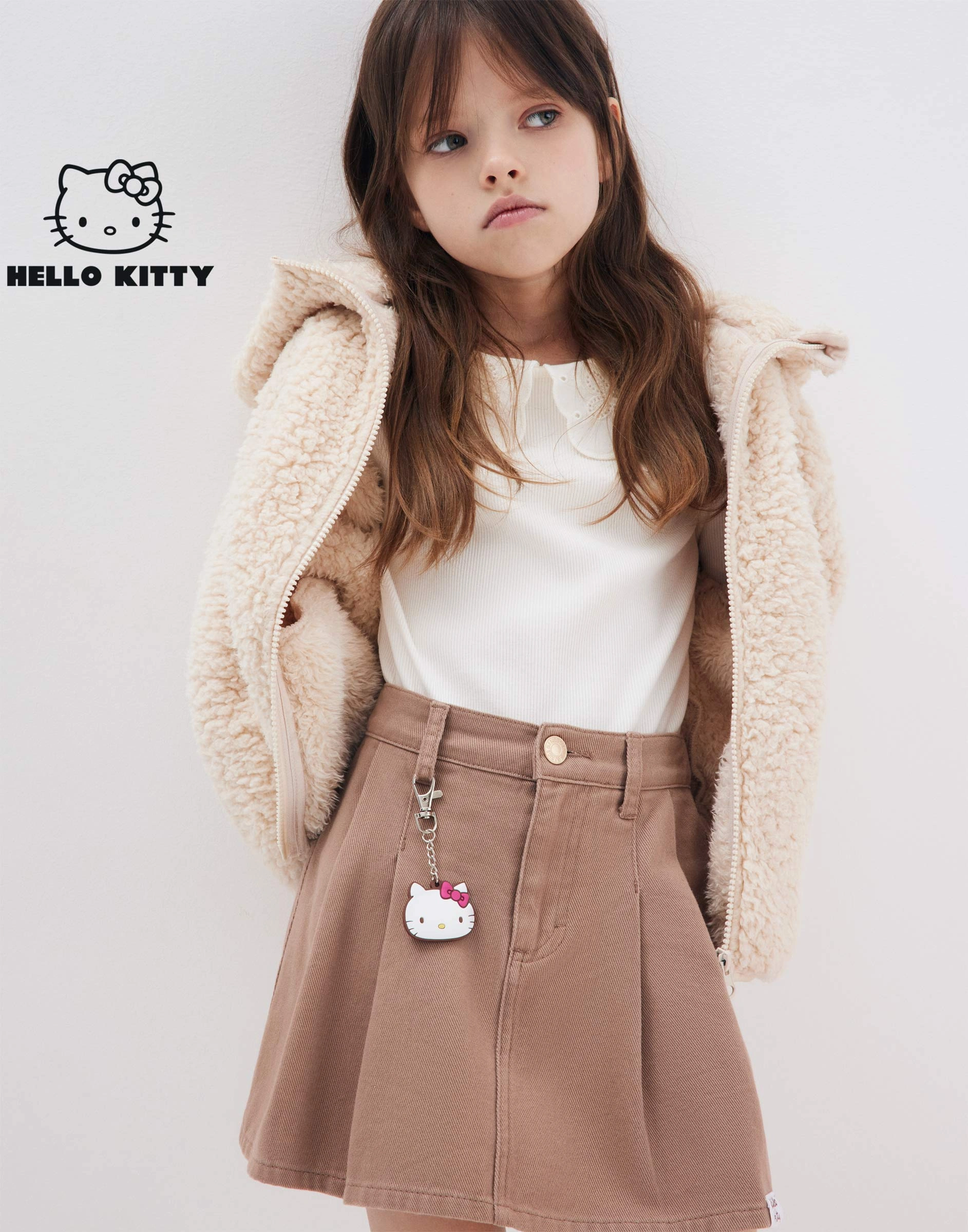 Коричневая джинсовая юбка-трапеция с брелоком Hello Kitty для девочки Gsk020163-1