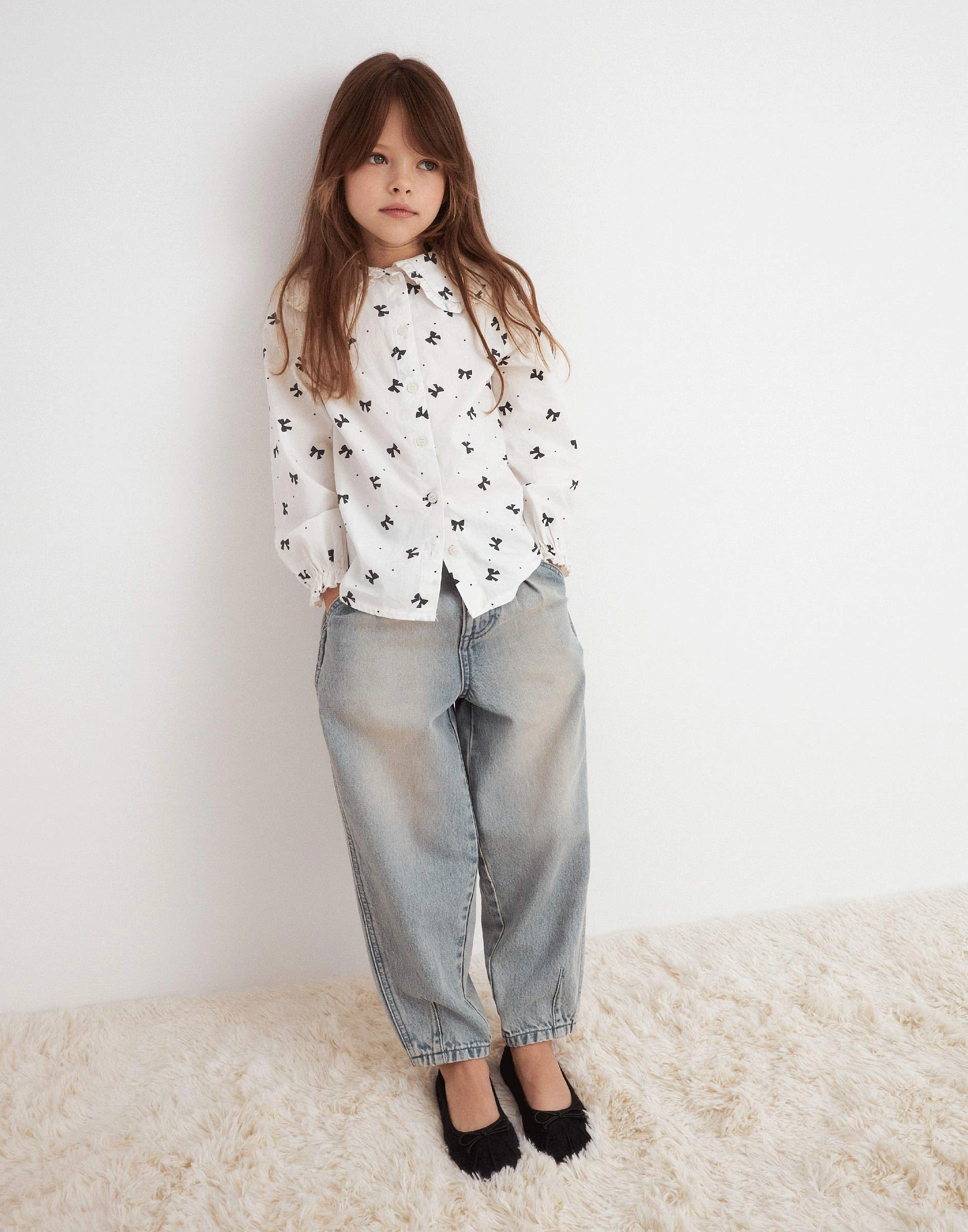 Молочная рубашка с воротником и принтом для девочки Gwt004954-1