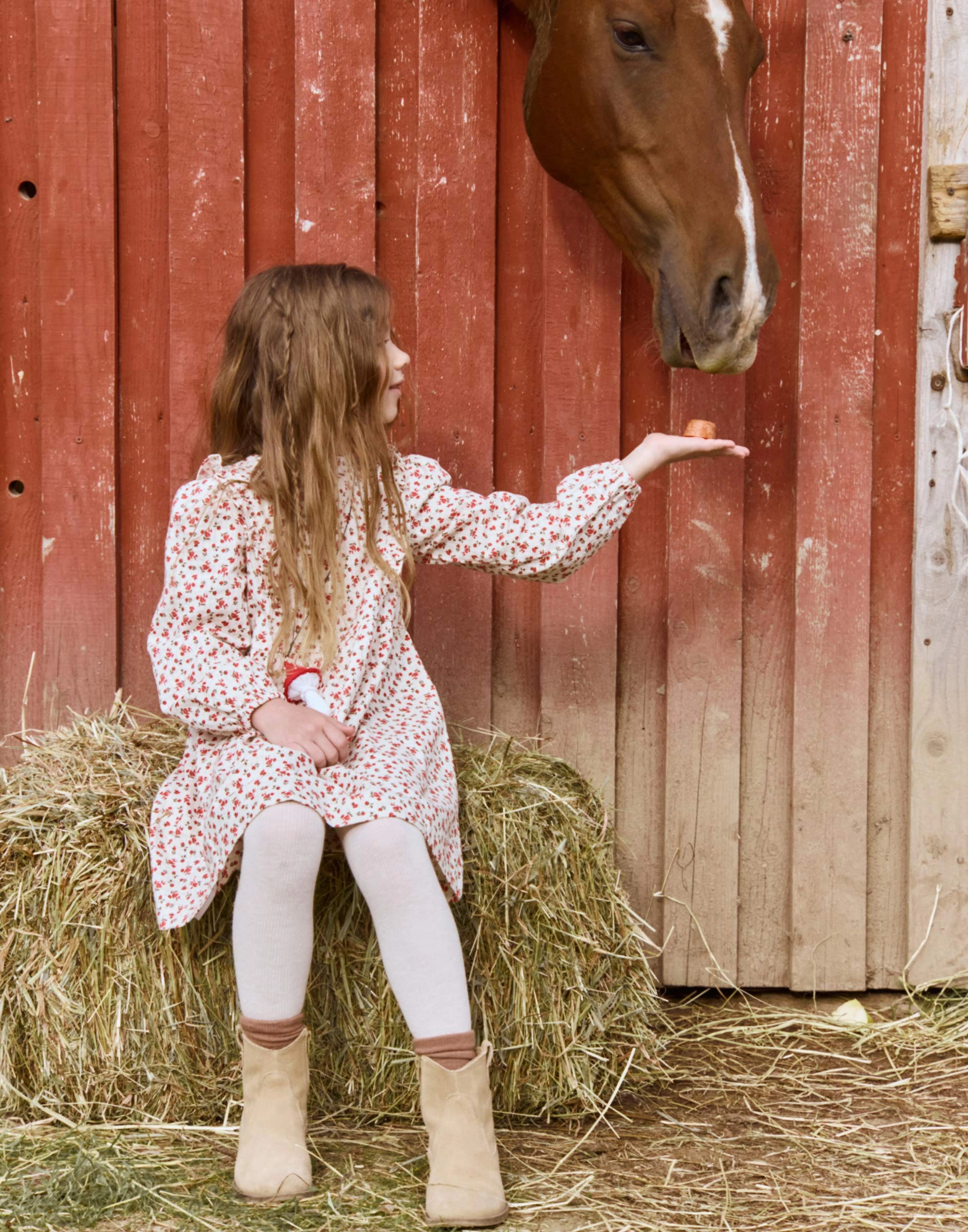 Молочное платье с цветочным принтом и оборками для девочки Gdr030348-1