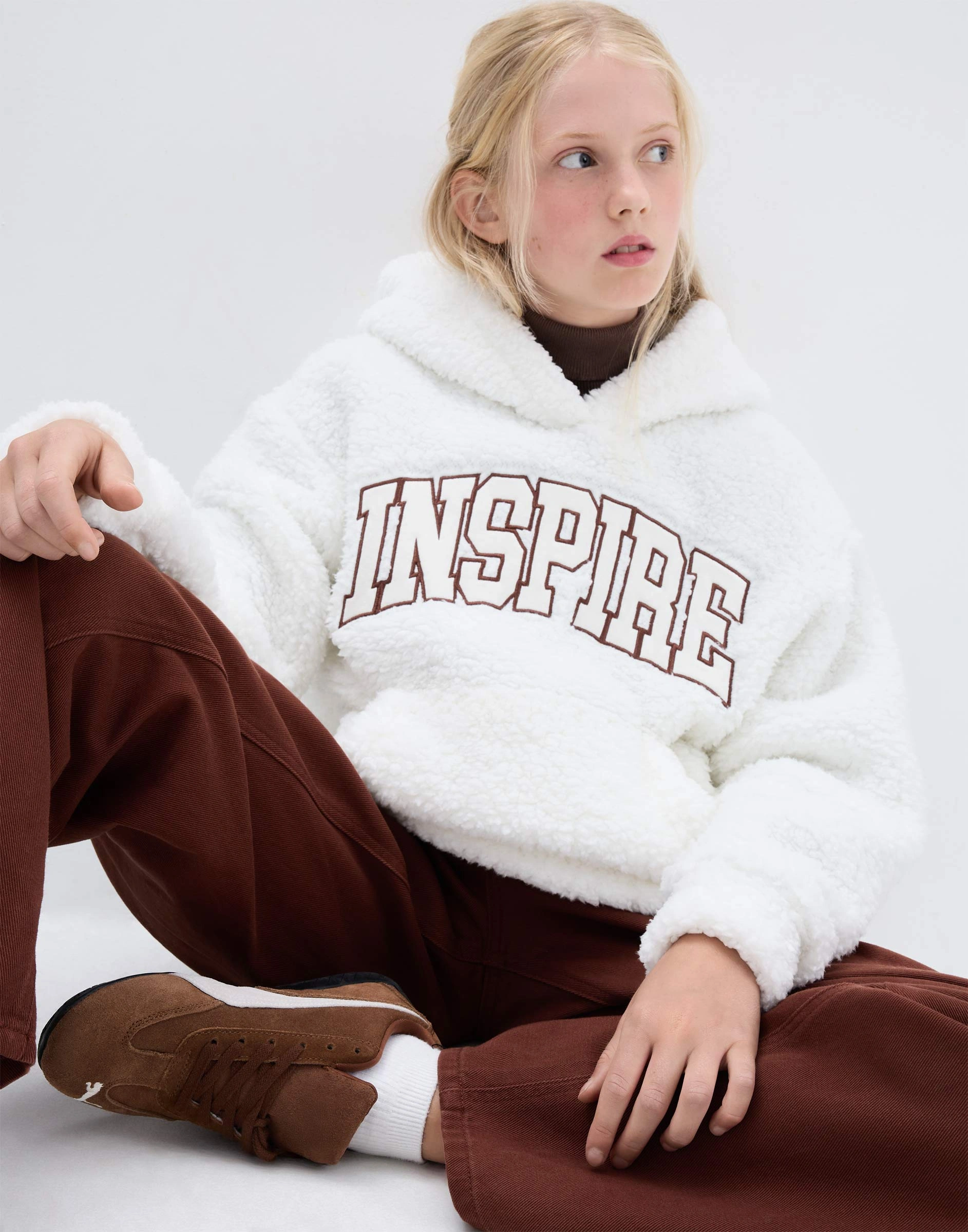 Молочное худи из шерпы с аппликацией Gfu000074-1