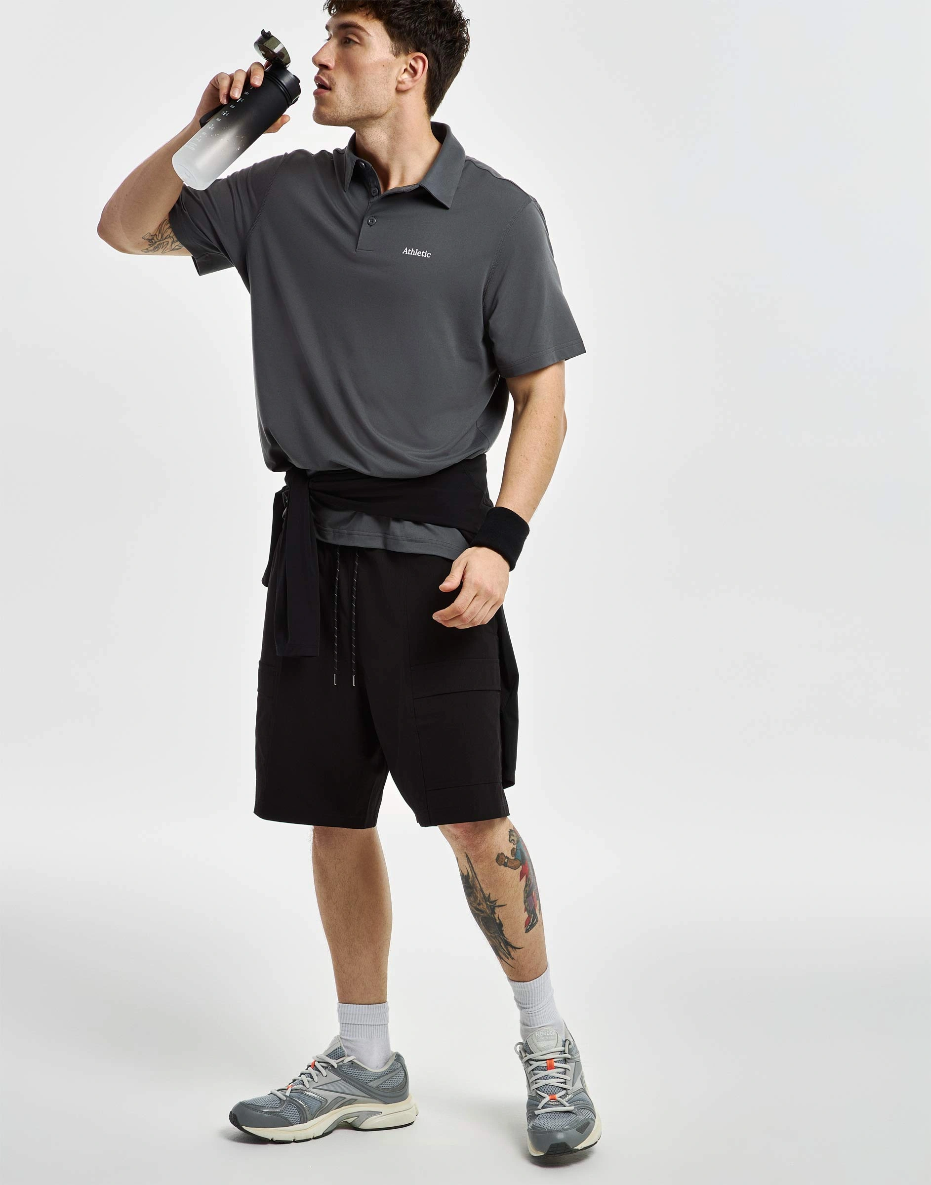Тёмно-серая спортивная футболка-поло с принтом Brt000119-2