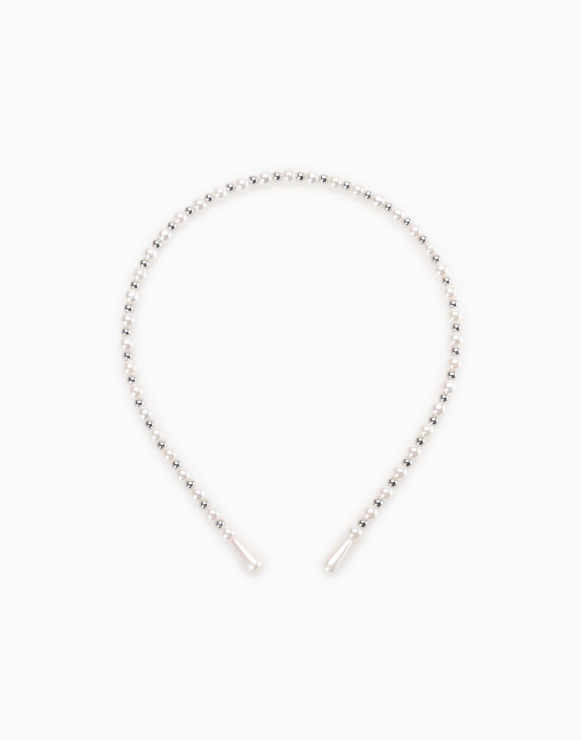 Серебристый ободок с имитацией жемчужин Gjw013323-1
