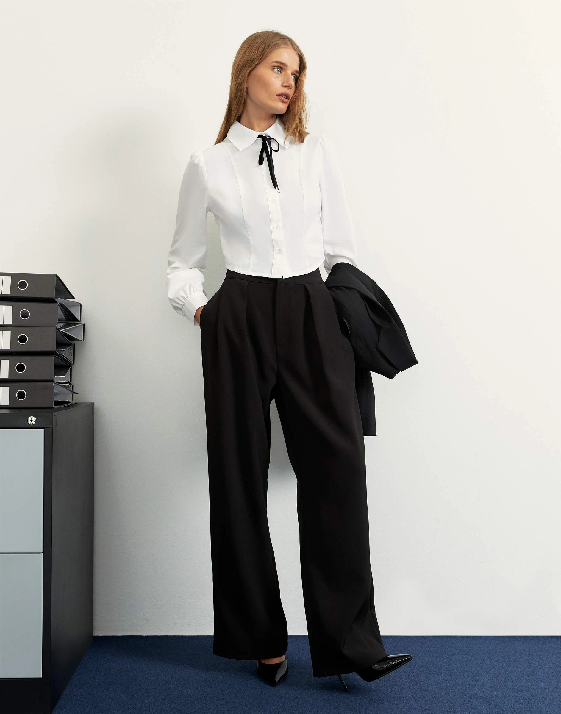 Белая рубашка с объёмными рукавами и завязками Gwt005008-1