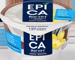 Йогурт Epica натуральный кокос ваниль 6.3%, 130г
