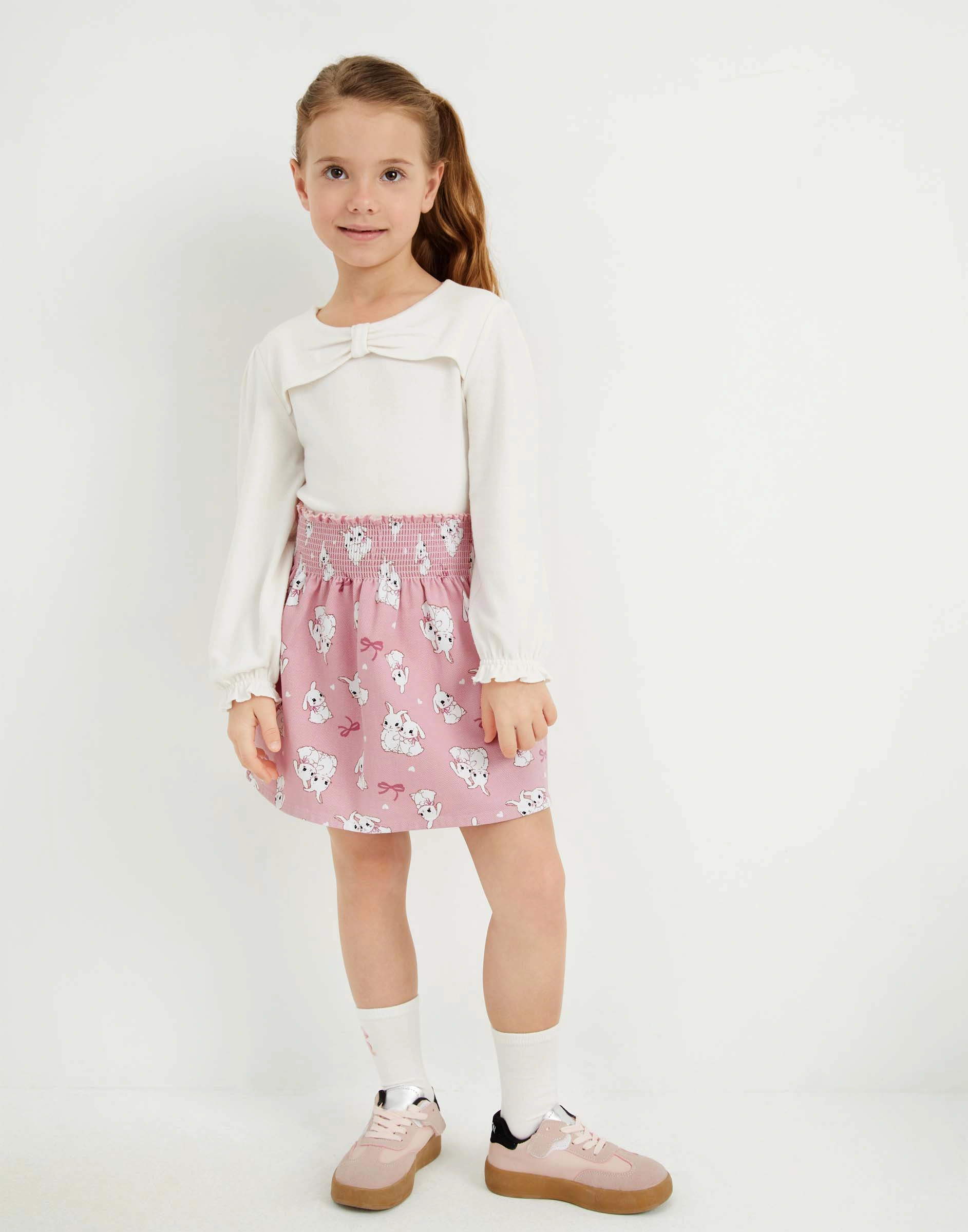 Розовая джинсовая юбка-трапеция с принтом для девочки Gsk020228-2