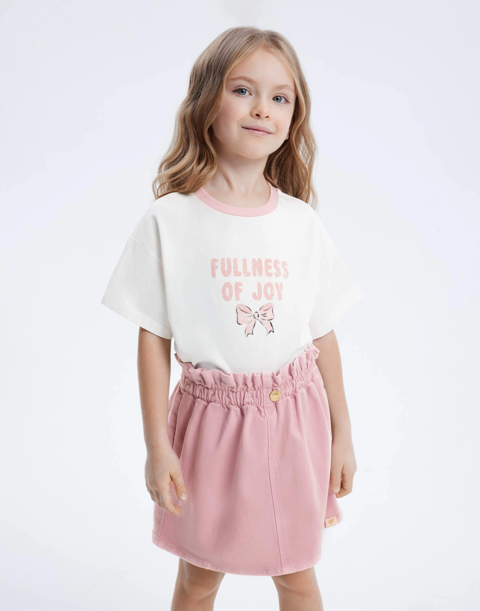Розовая джинсовая юбка Paperbag для девочки из твила Gsk019661-1
