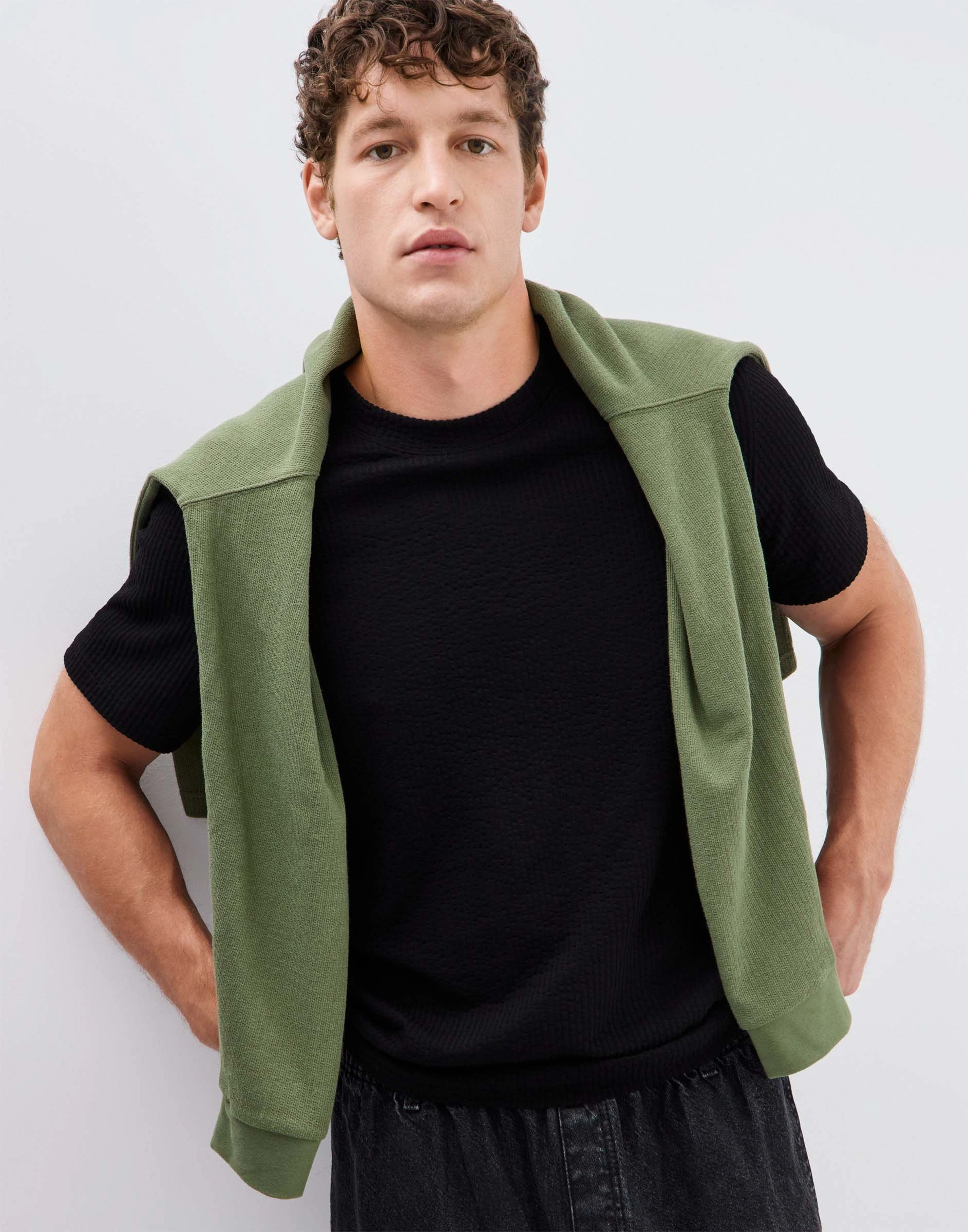 Чёрная футболка из фактурного материала Bkt017189-1