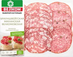 Набор колбас Велком Брауншвейгская, велкомовская, миланская сырокопченые полусухие 90г