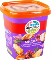 Мидии Меридиан с вялеными томатами чесноком и зеленью в масле 415г