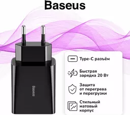 Сетевое зарядное устройство Baseus Speed Mini Quick Charger 1C 20W Black (Ccfs-sn01)