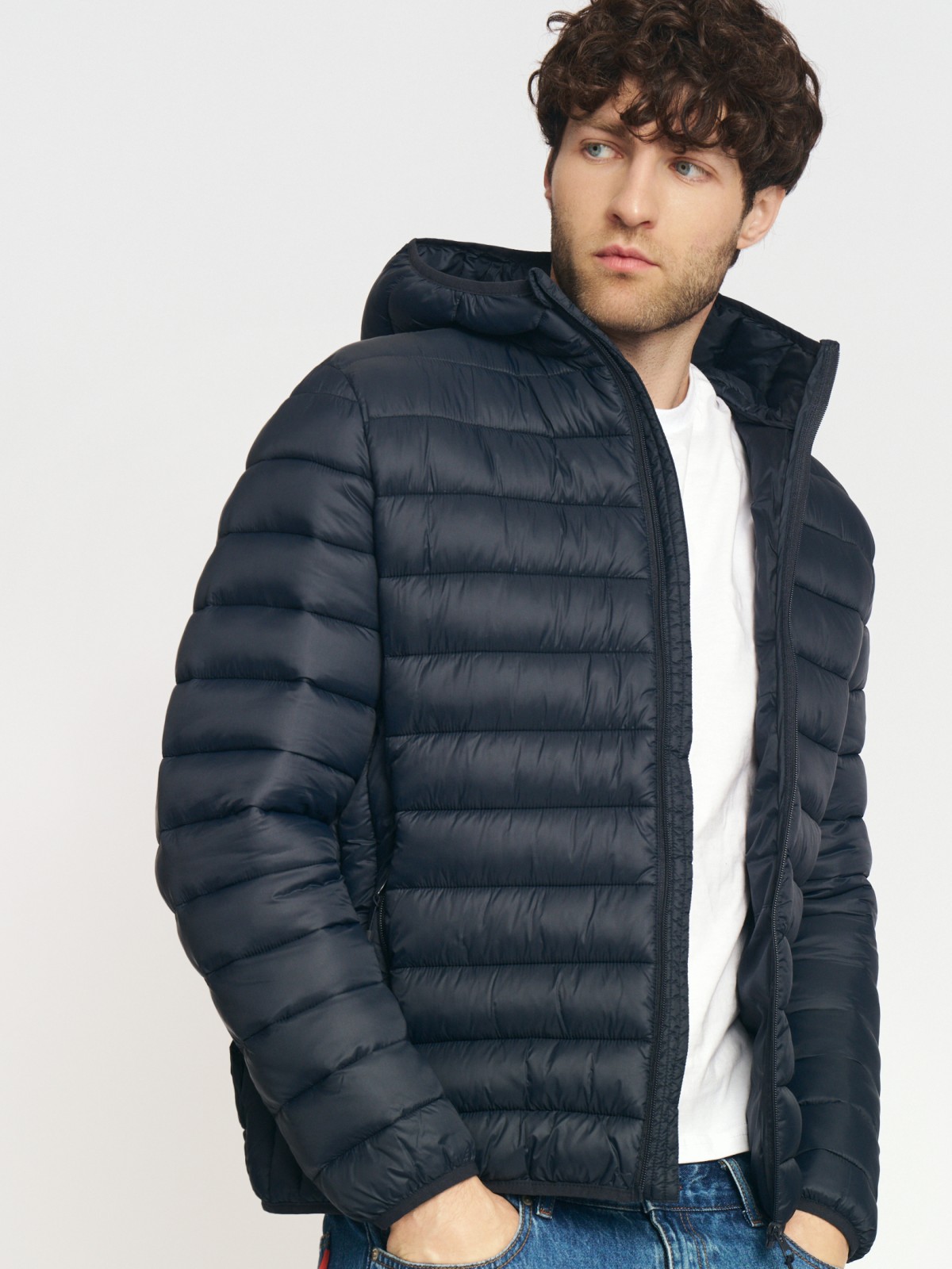 Утеплённая стёганая куртка на молнии с капюшоном