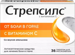 Стрепсилс с витамином с таблетки для рассасывания со вкусом апельсина 36шт