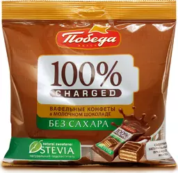 Конфеты вафельные Победа вкуса Chsrged в молочном шоколаде без сахара, 150г