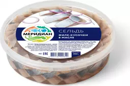 Пресервы Меридиан Сельдь филе-кусочки в масле 350г/пластик банка/6