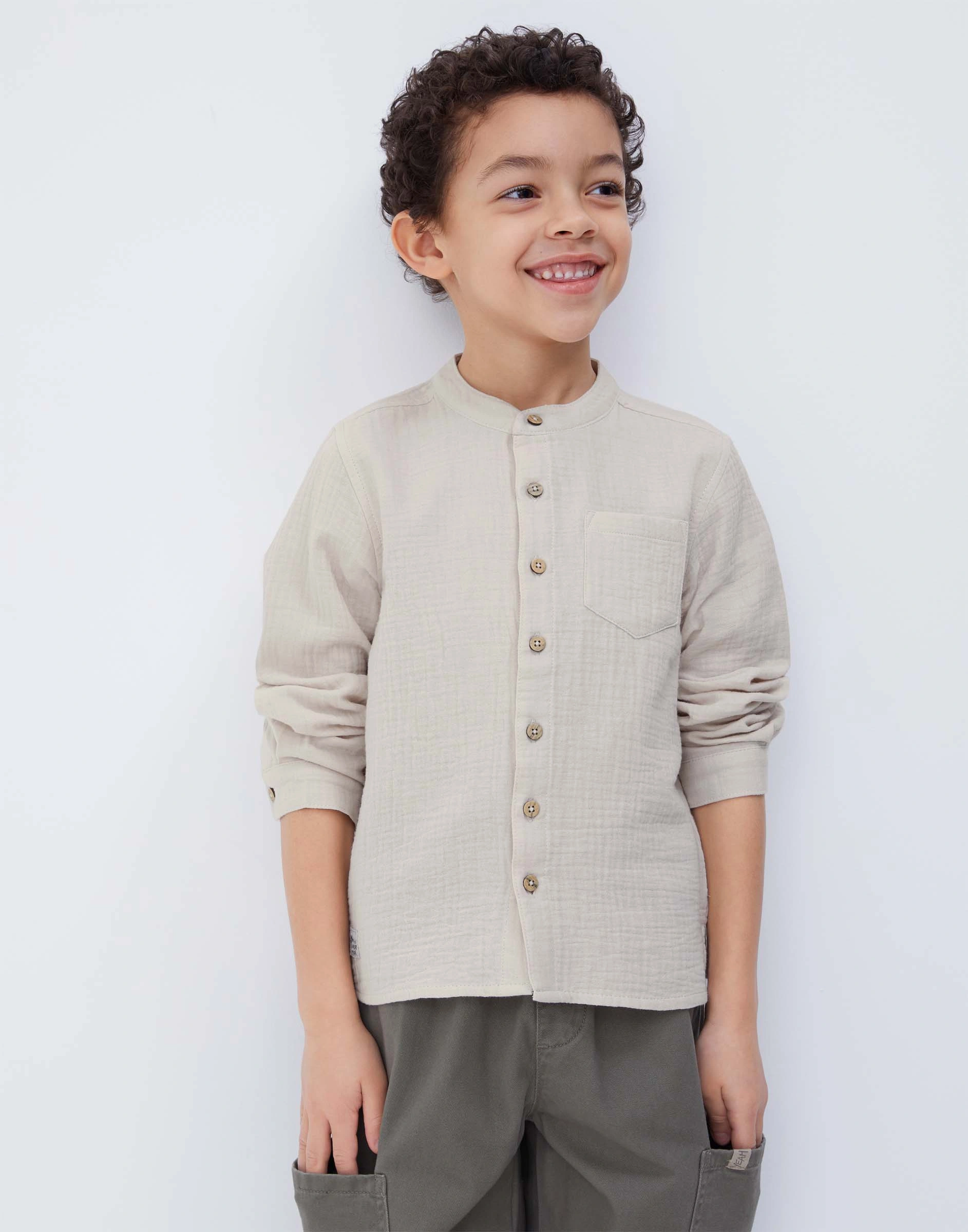 Бежевая рубашка из муслина с воротником для мальчика Bwt001890-2