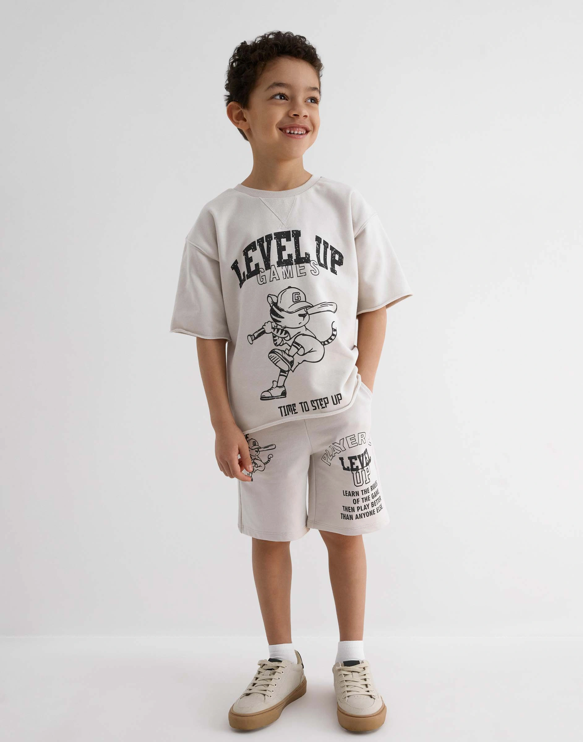 Бежевые спортивные шорты с принтом для мальчика Bsh007925-2