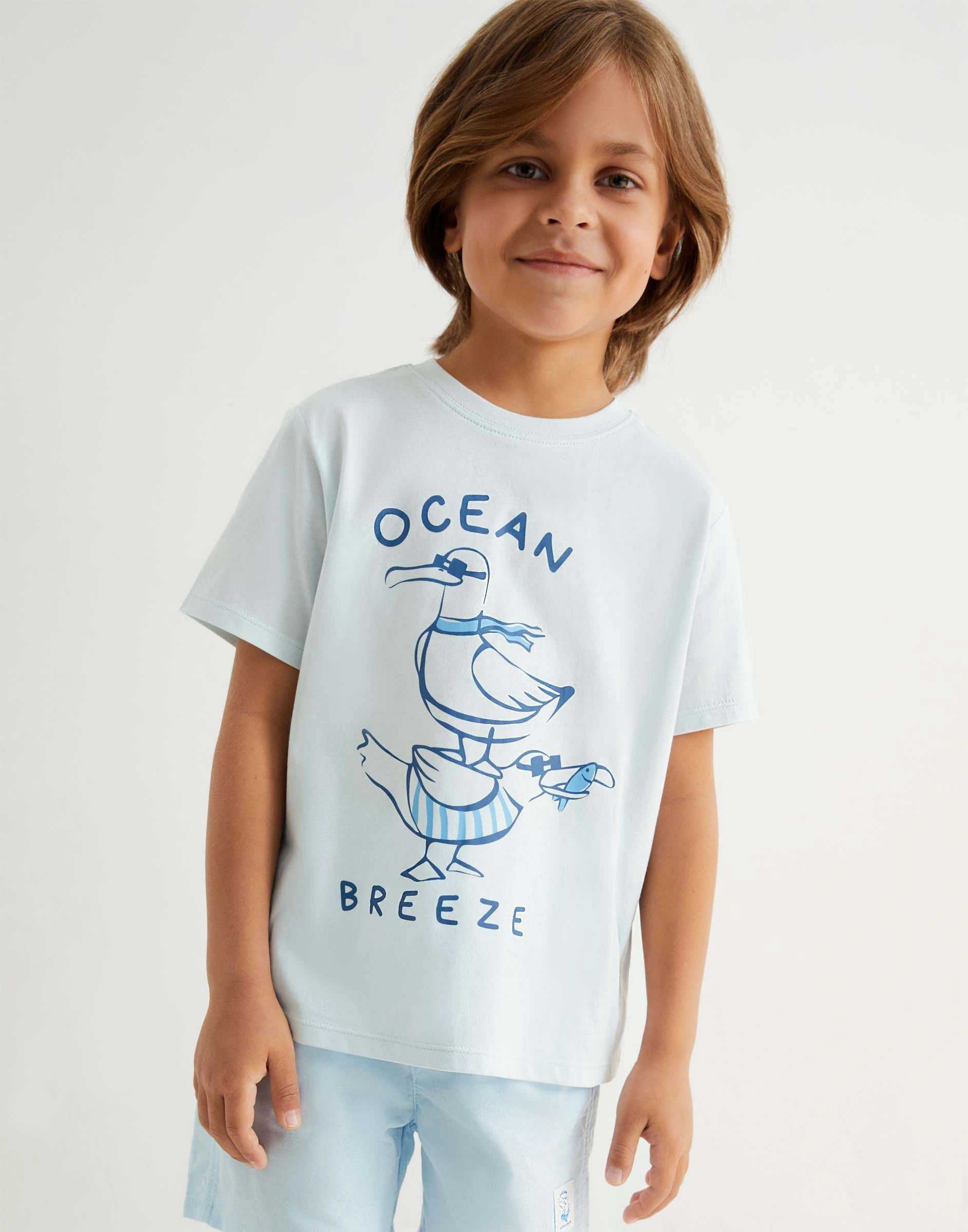 Голубая футболка с принтом для мальчика Bkt016701-1