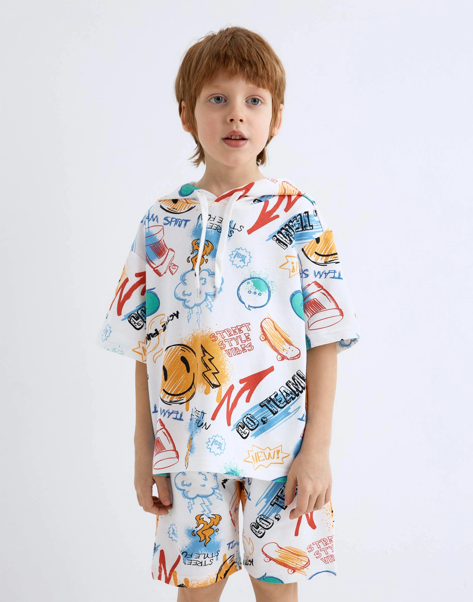 Молочное худи с коротким рукавом и принтом для мальчика Bac014082-2