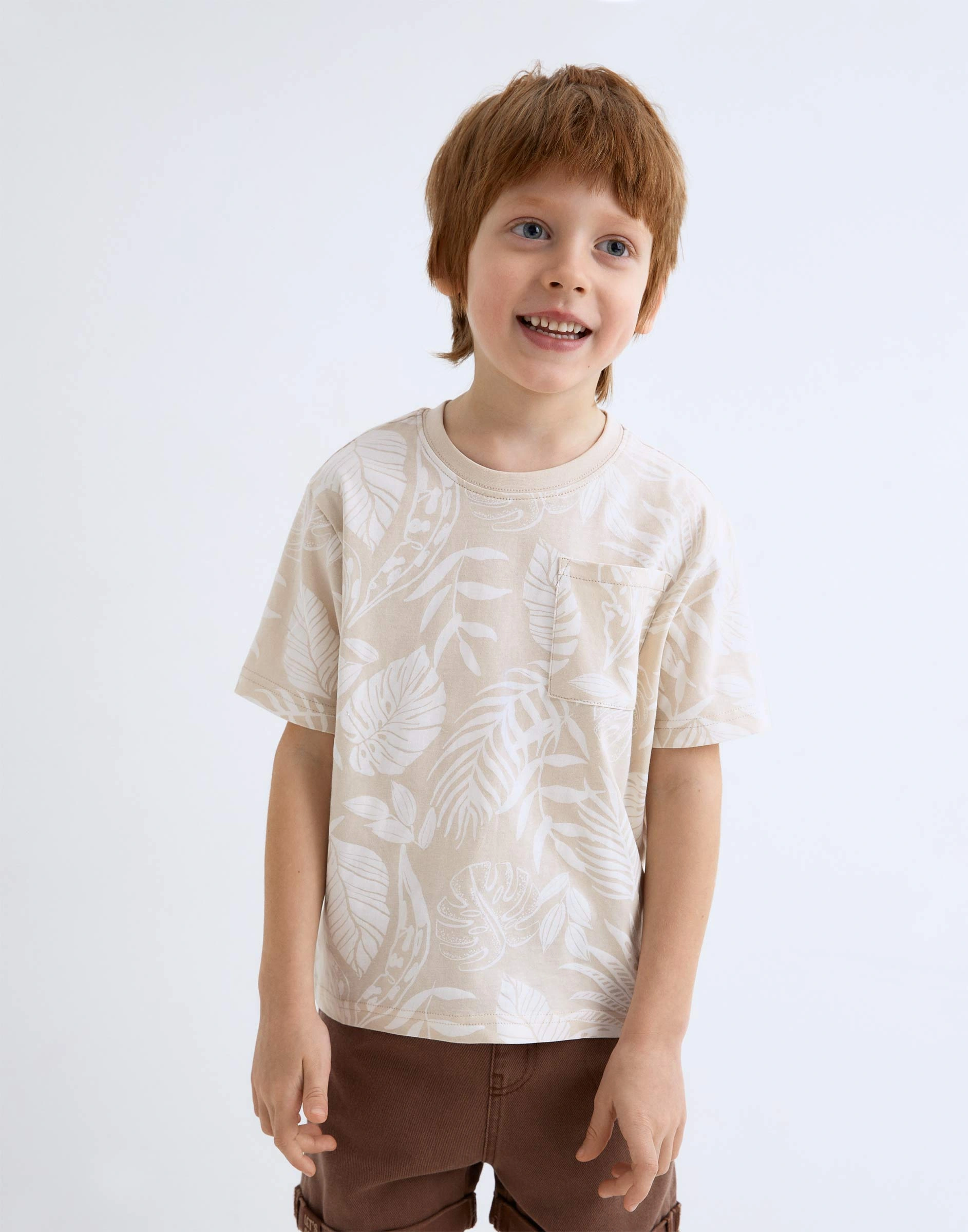 Светло-бежевая футболка oversize с растительным принтом для мальчика Bkt016276-3