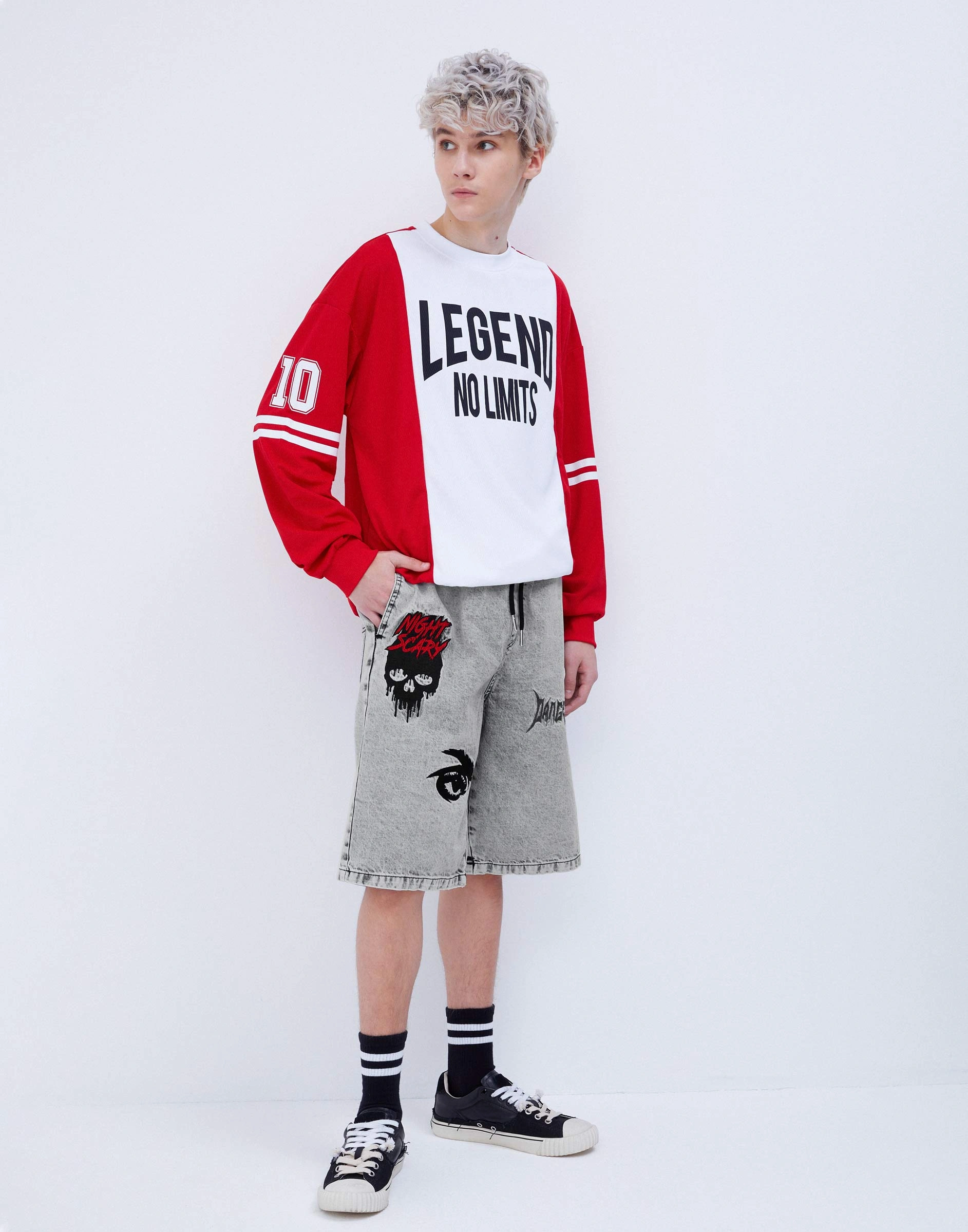 Серые джинсовые шорты Comfort с вышивками Bsh007761-1