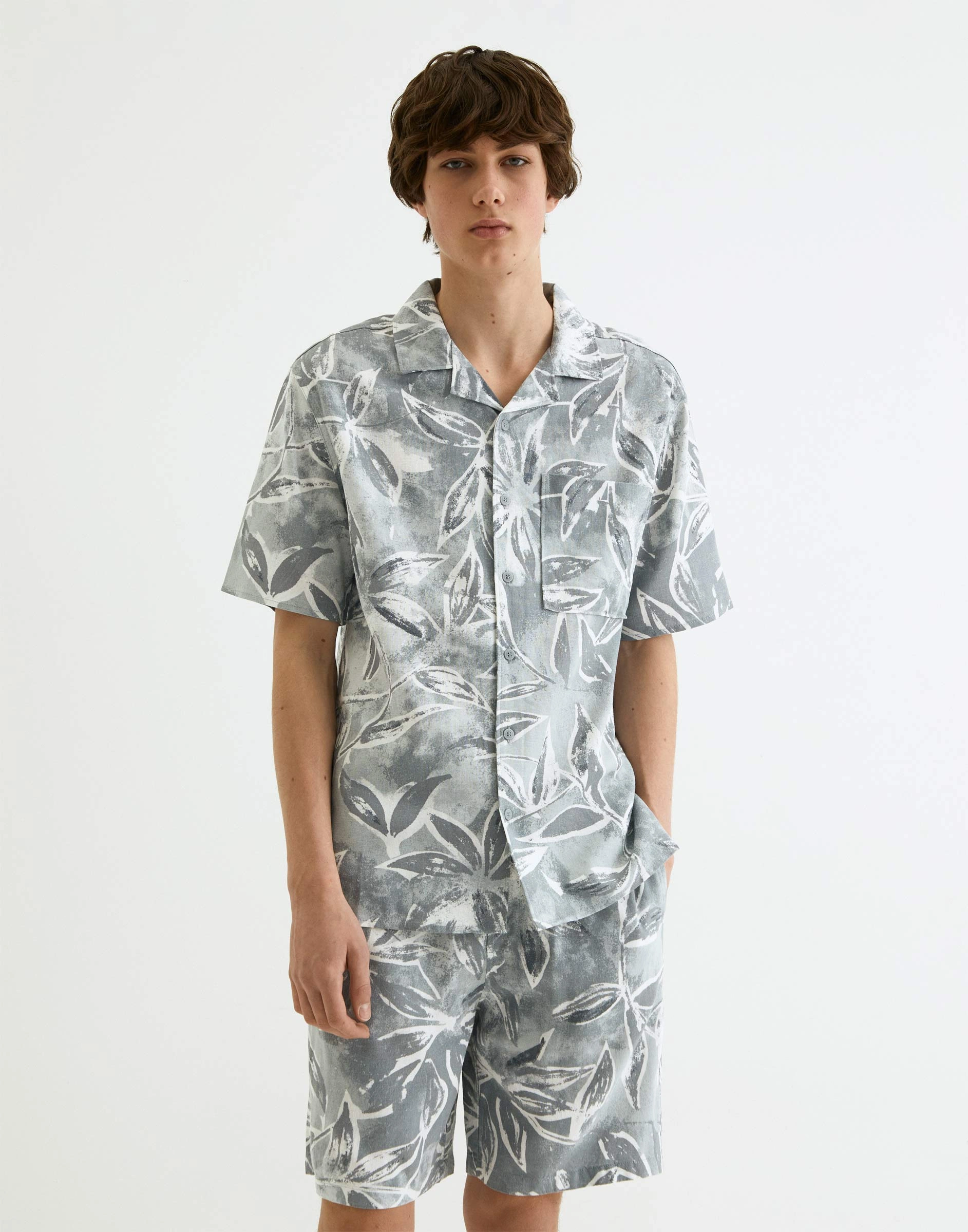 Серые шорты Easy fit со льном и принтом Bsh008187-1