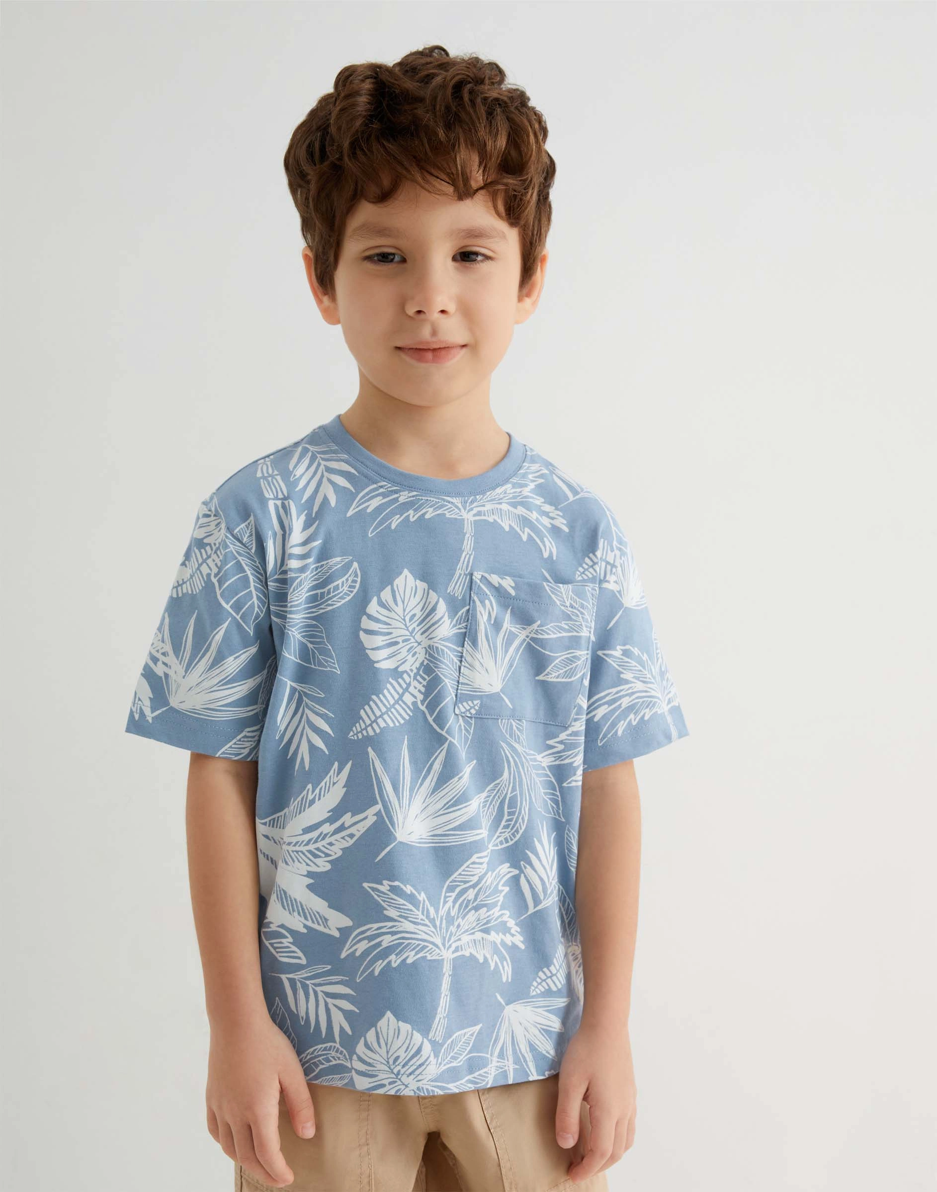 Синяя футболка oversize с растительным принтом для мальчика Bkt016276-2