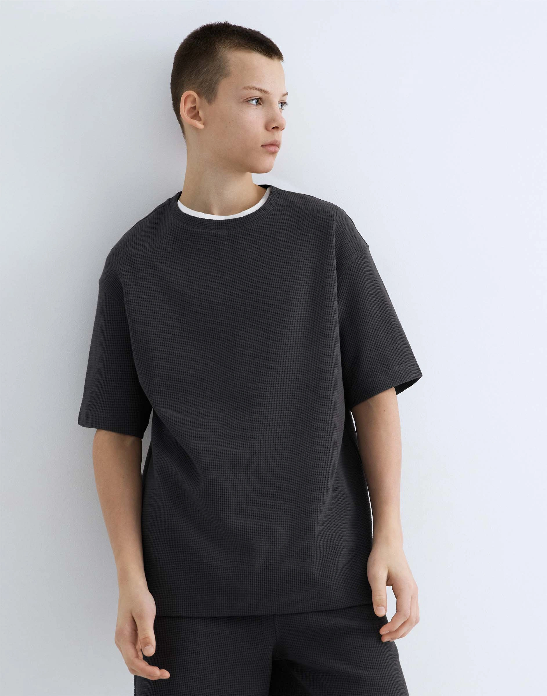 Тёмно-серая свободная футболка с жаккардовой фактурой Bac013771-2