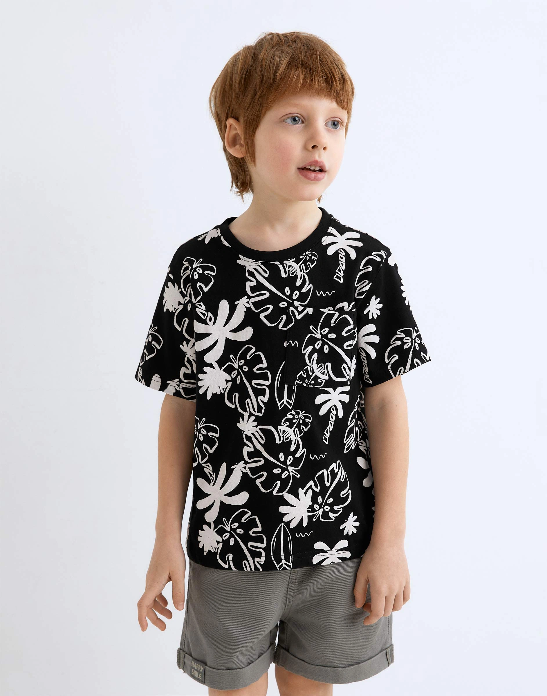 Чёрная футболка oversize с растительным принтом для мальчика Bkt016276-1