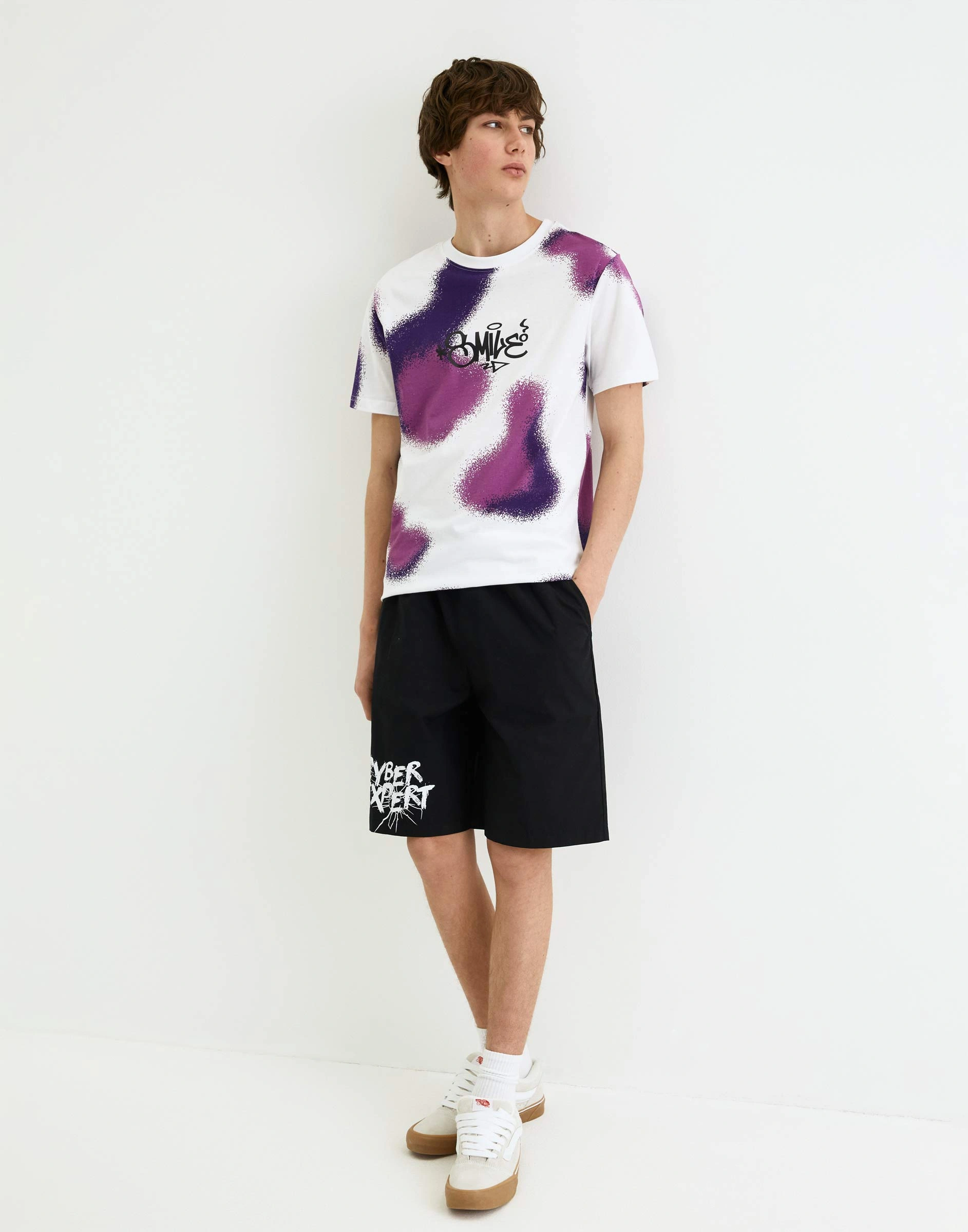 Чёрные шорты Straight из поплина с принтом Bsh008166-1