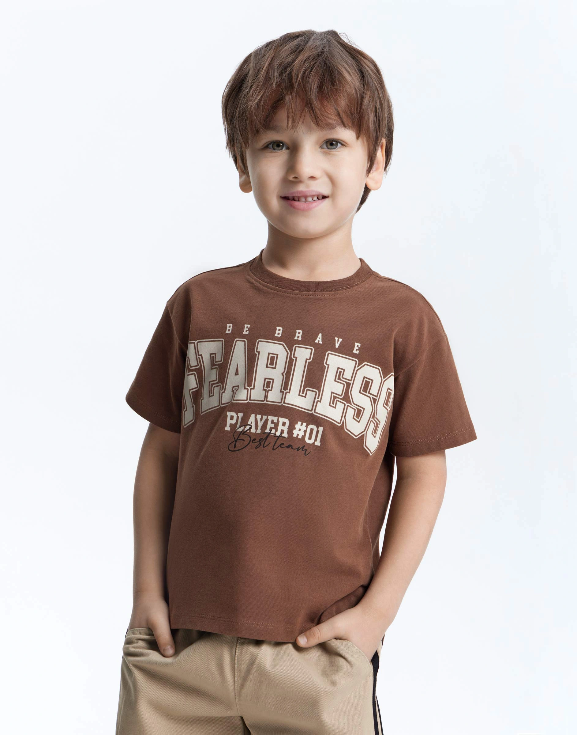 Коричневая футболка с принтом для мальчика Bkt016946-1