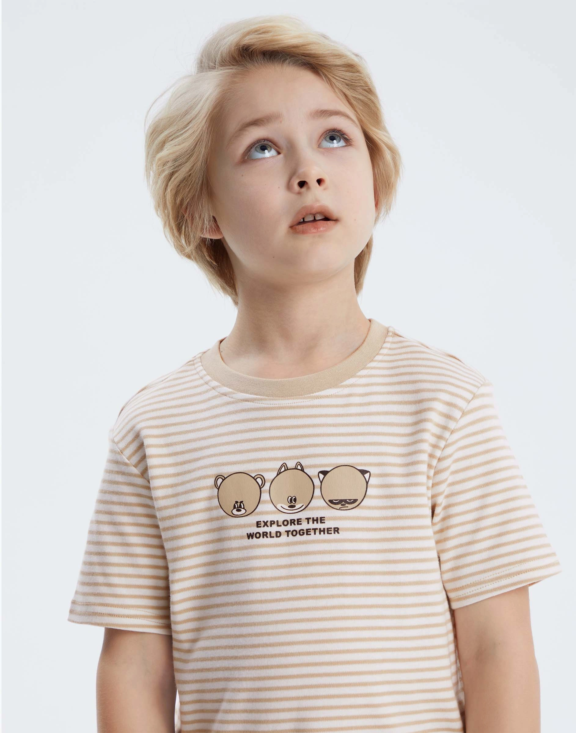 Полосатая футболка с принтом для мальчика Bkt016223-1
