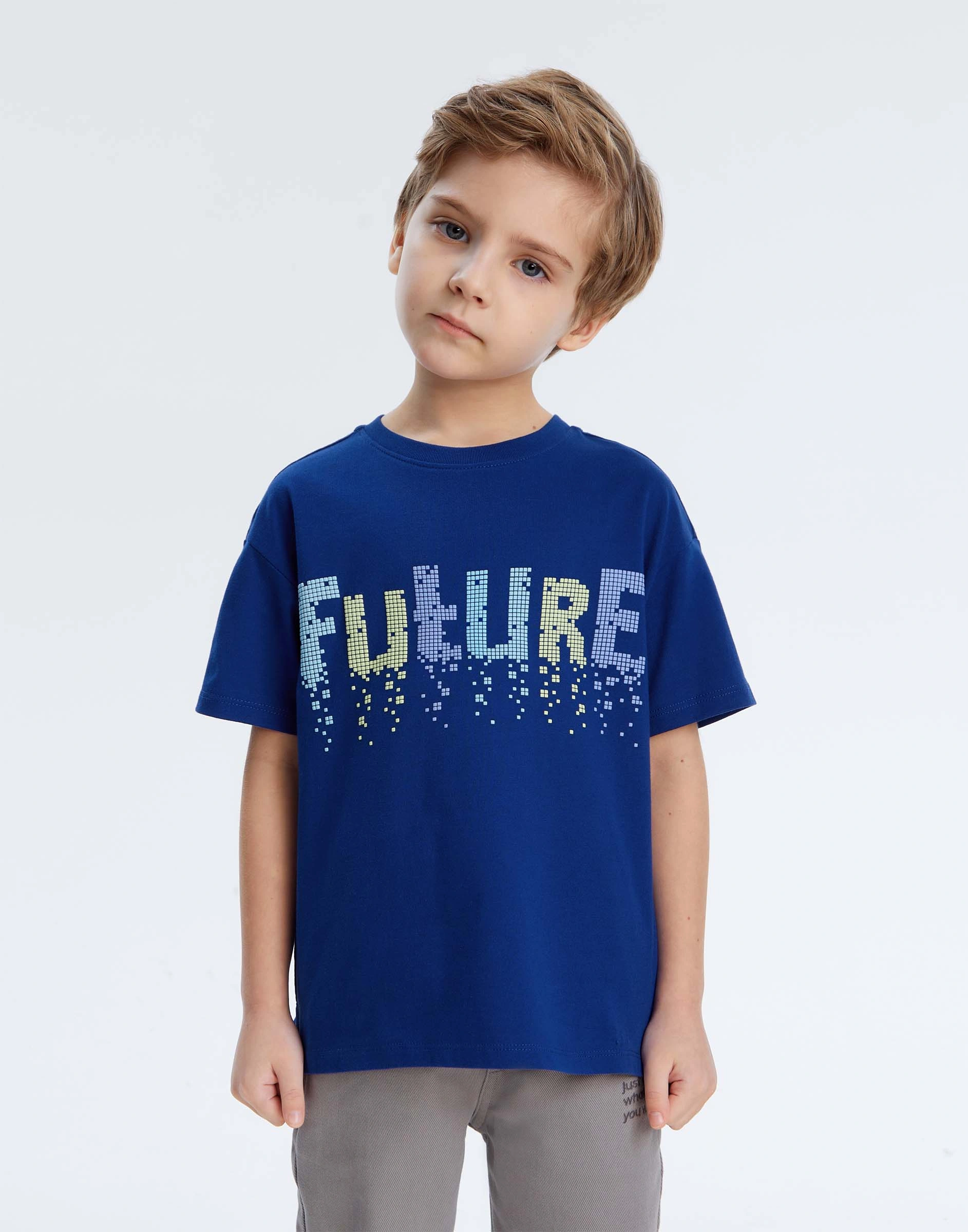 Синяя футболка oversize с принтом для мальчика Bkt016419-2
