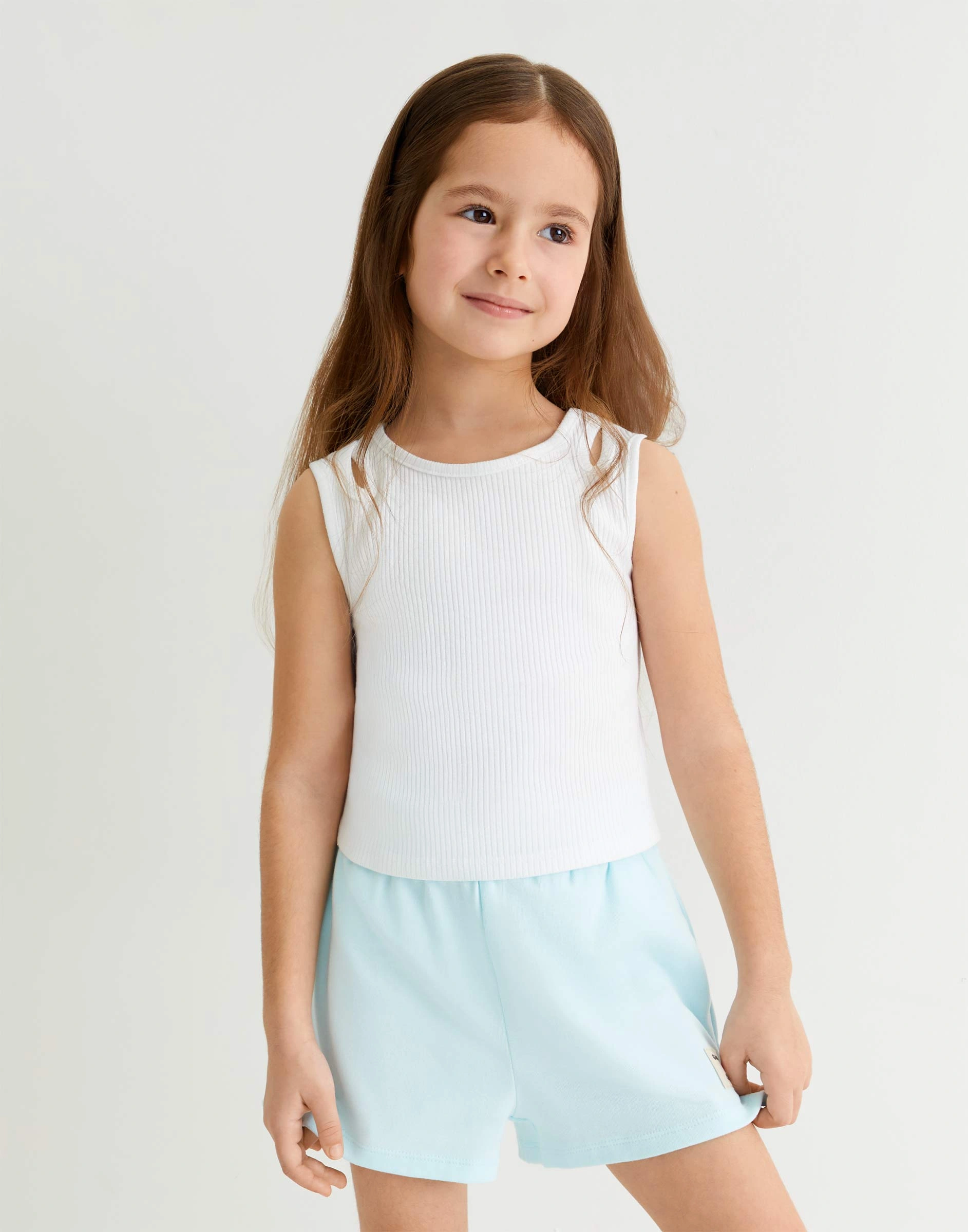 Белая майка в рубчик с вырезами на бретелях для девочки Gtn004544-1
