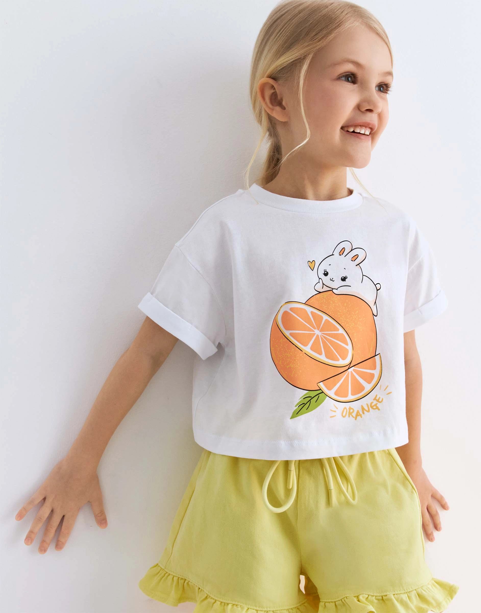 Белая укороченная футболка oversize с принтом для девочки Gkt026937-1