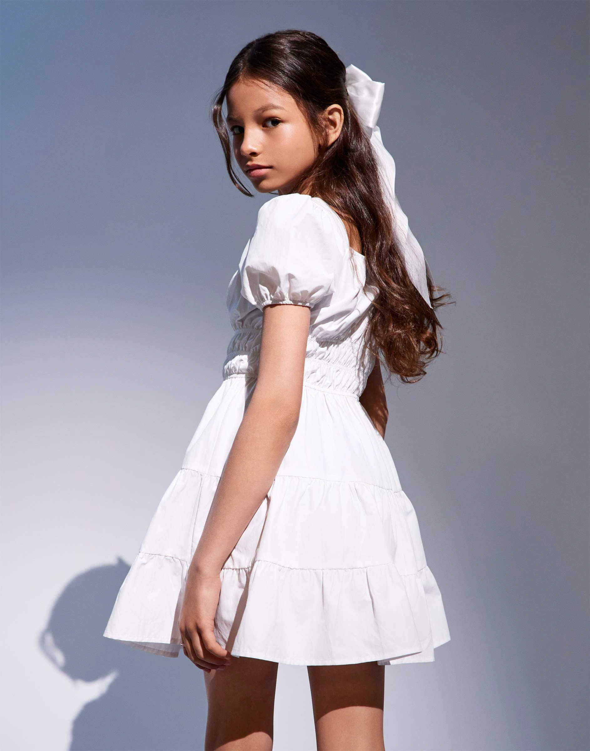 Белое ярусное платье с рукавами-фонариками Gdr028966-1