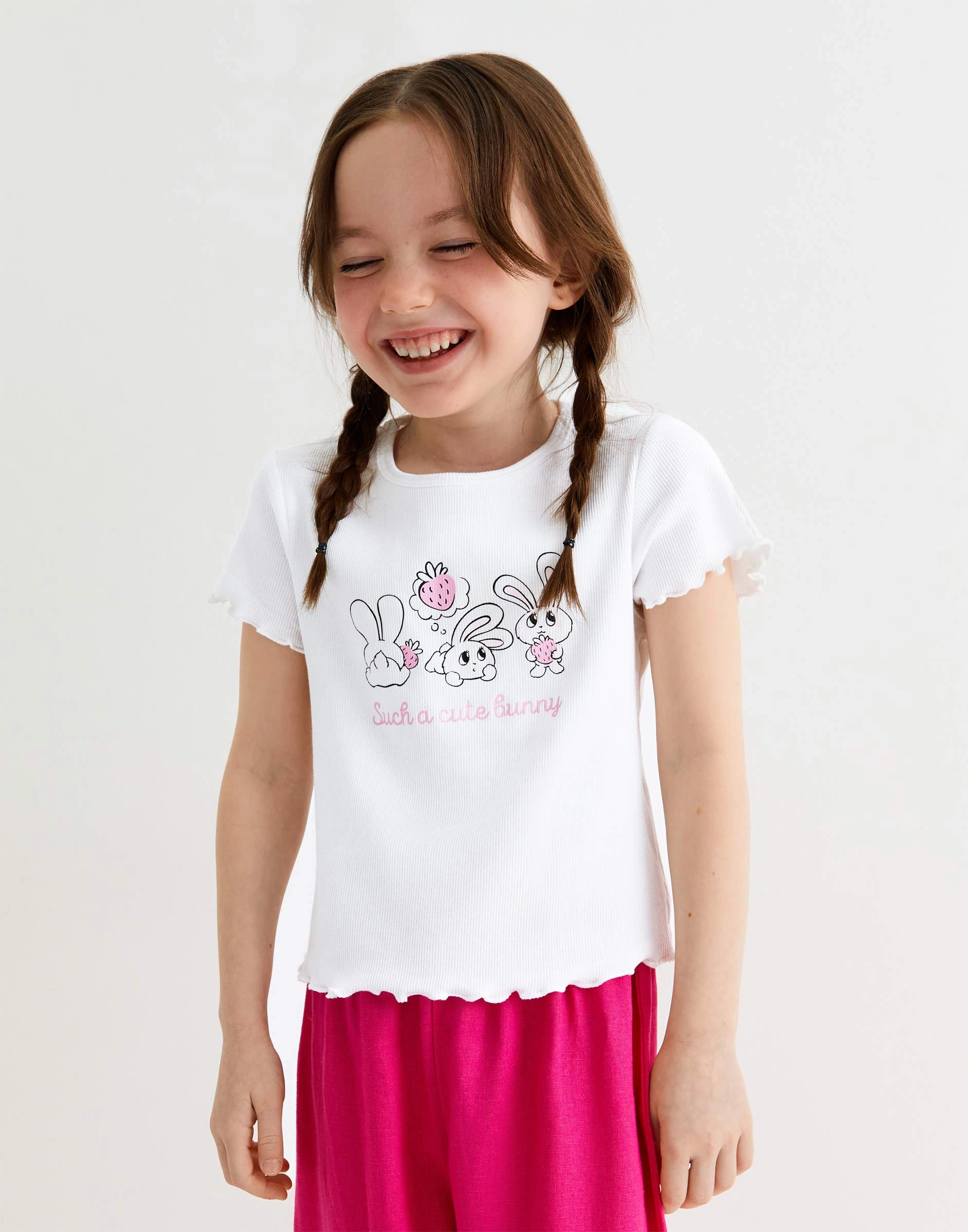 Белый кроп-топ в рубчик с принтом для девочки Gkt027034-1