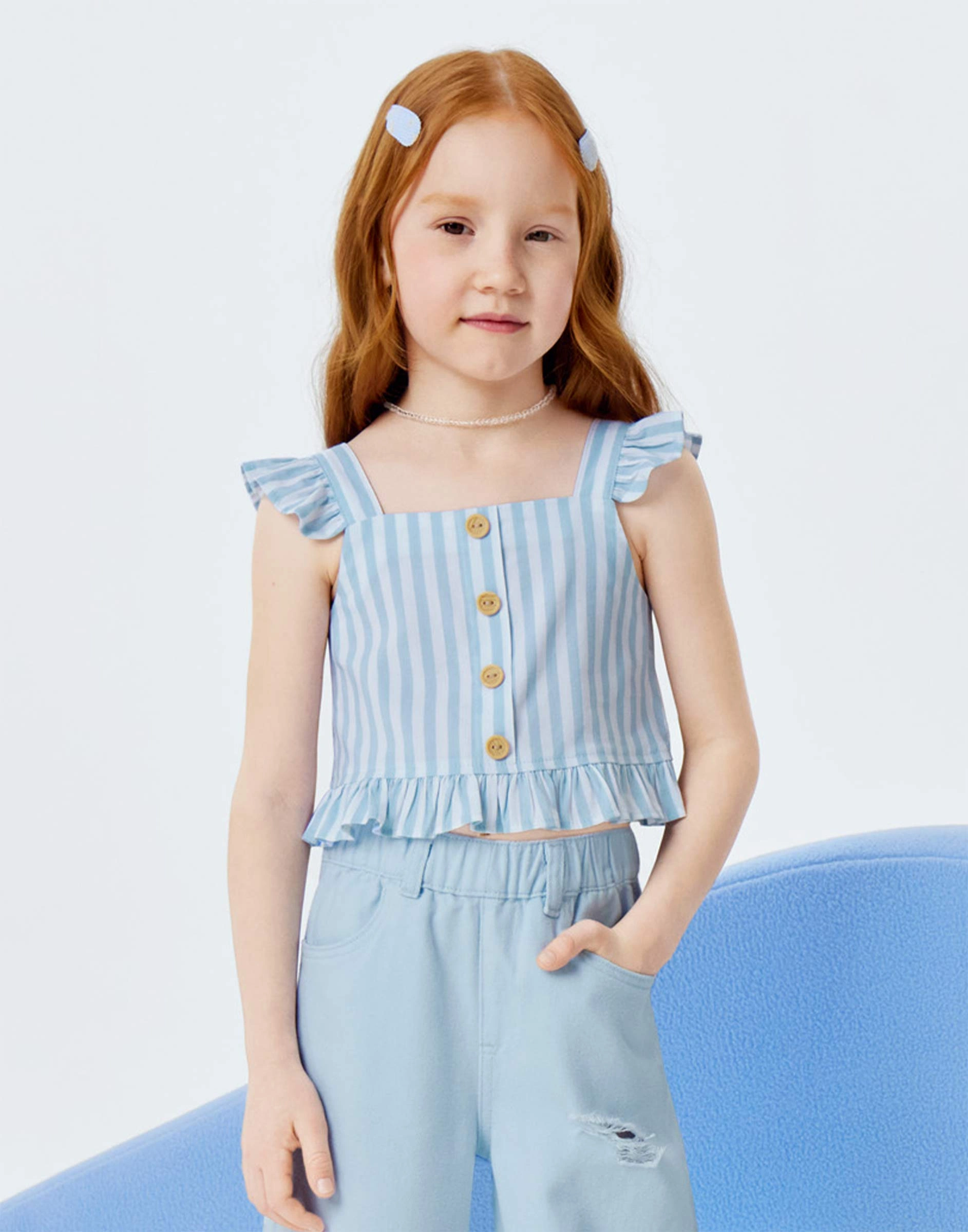 Голубая блузка в полоску с оборками для девочки Gwt004826-1