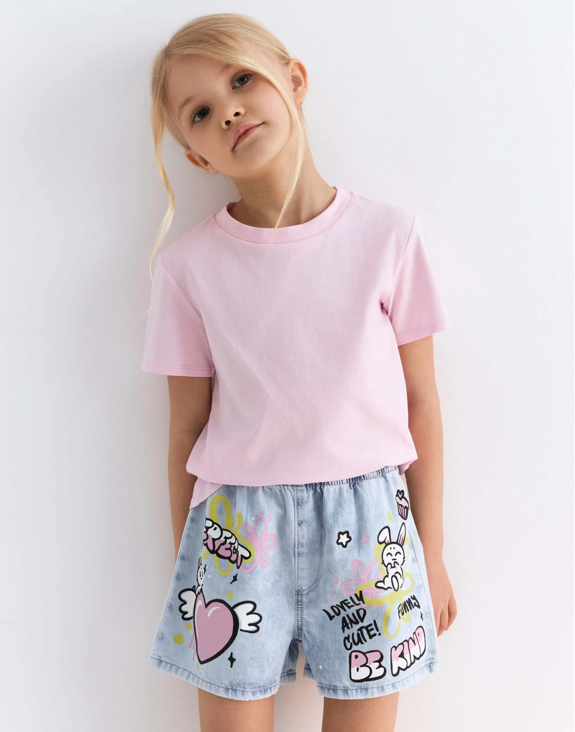 Джинсовые шорты с принтом для девочки Gsh013012-1
